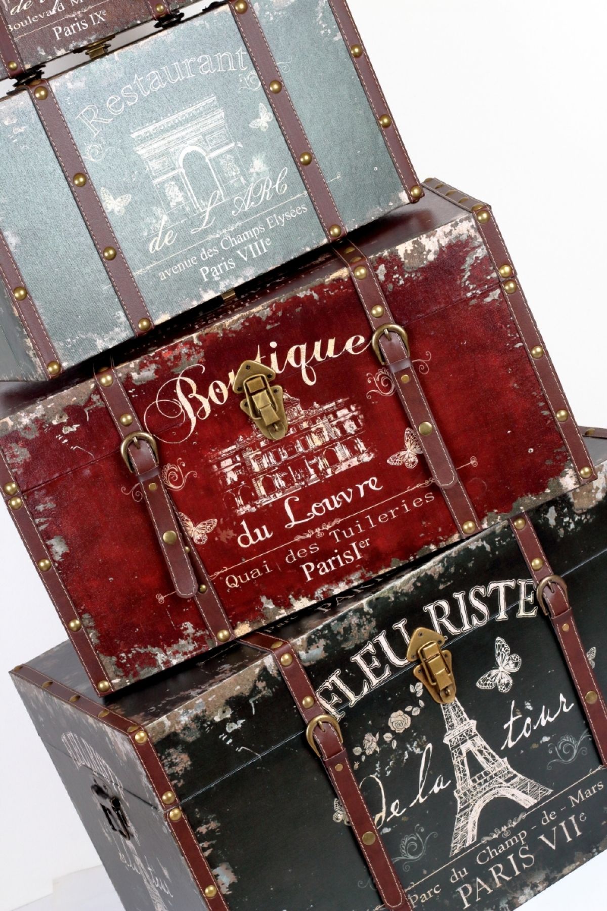 Retro kufr / truhla Paris 41x70x43cm jako stylový odkládací stolek a zároveň praktický úložný prostor, který se vždy hodí.