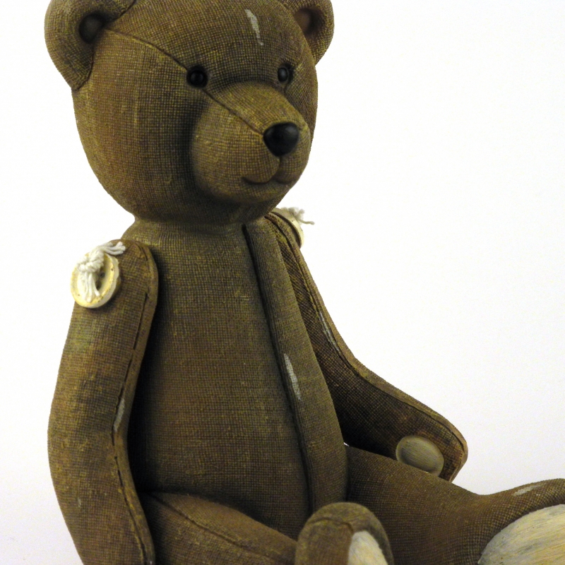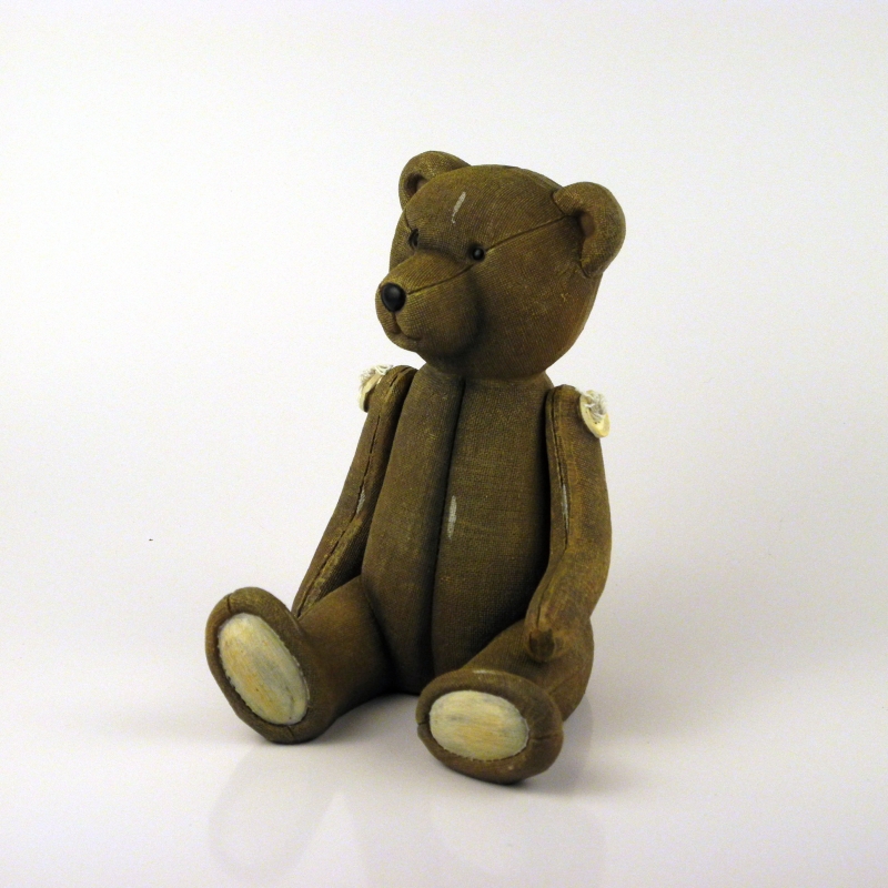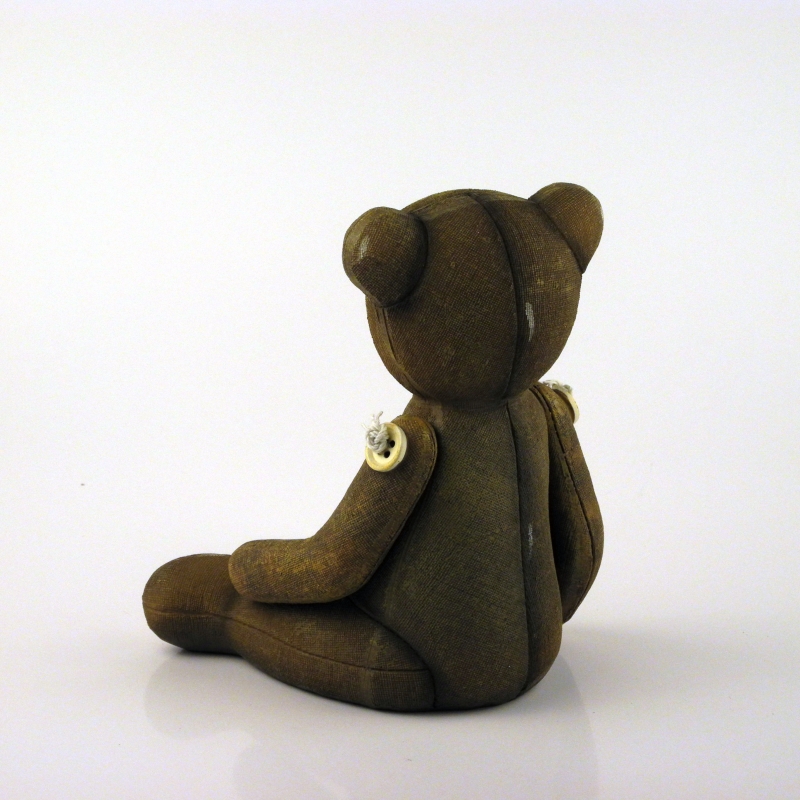Replika retro plyšového medvídka je vyrobena z polyresinu. Rozměry medvídka jsou: výška 18cm, š.12cm a délka od tlapek po záda 12cm.