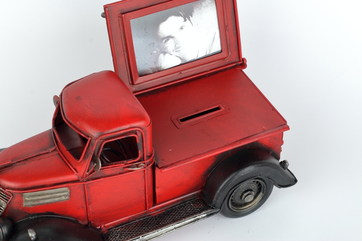 Nádherný retro model náklaďáku ( pokladnička )bude krásnou součástí sbírky modelů. Udělá také radost jako dárek, ať už sběrateli nebo kamarádu kamioňákovi, pro nějž bude určitě hezkou vzpomínkou.