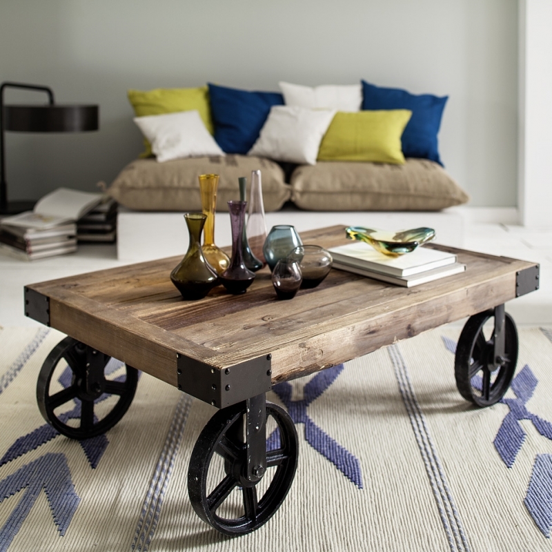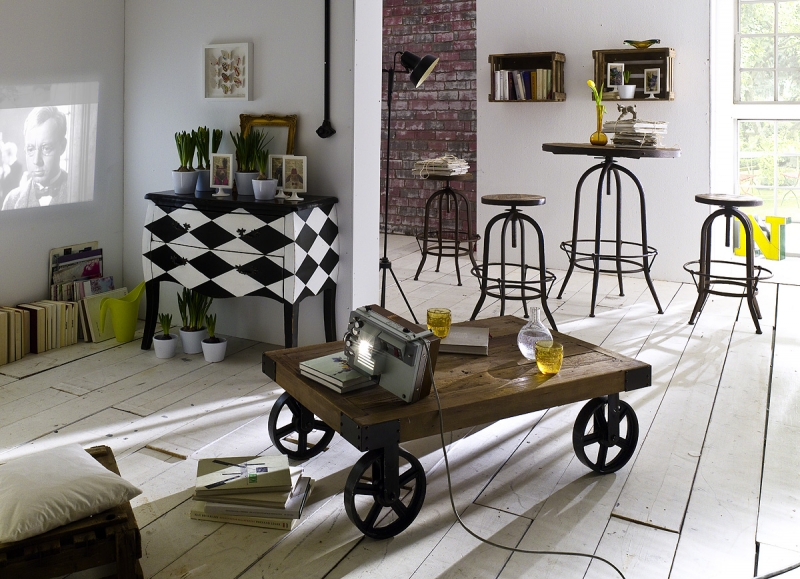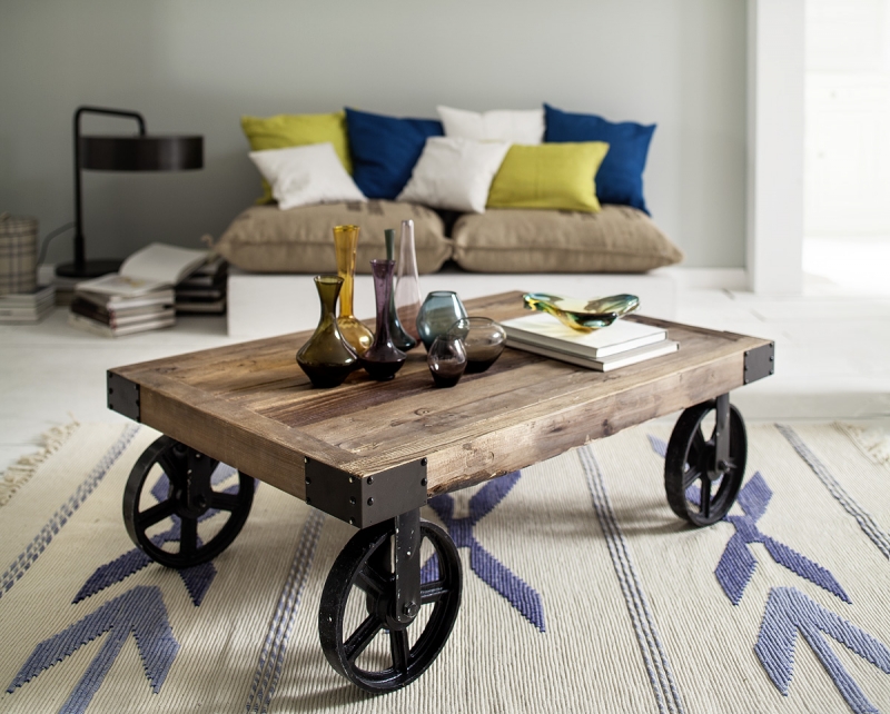 Retro nábytek je dominantou interiéru. Tento konferenční stolek na kolech o rozměrech 135x35x75cm