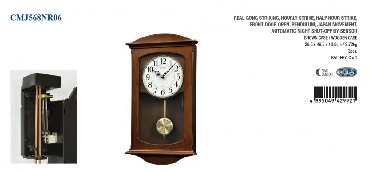 Retro nástěnné hodiny s kyvadlem odbíjejí pomocí dvou nastavitelných režimů - každou hodinu nebo po půl hodinách.