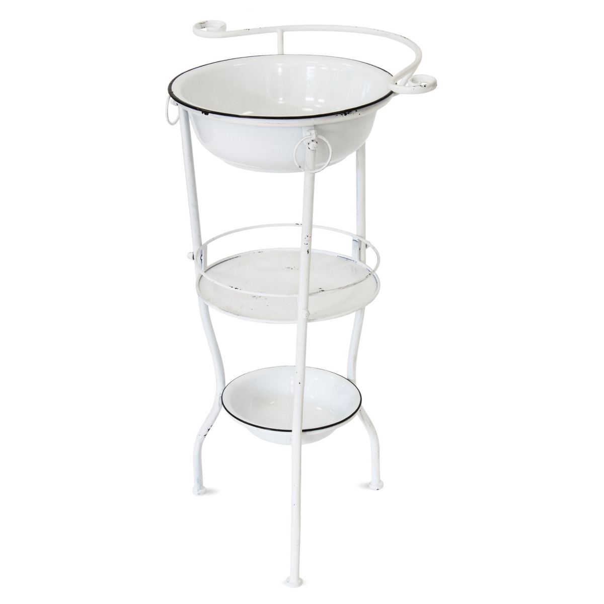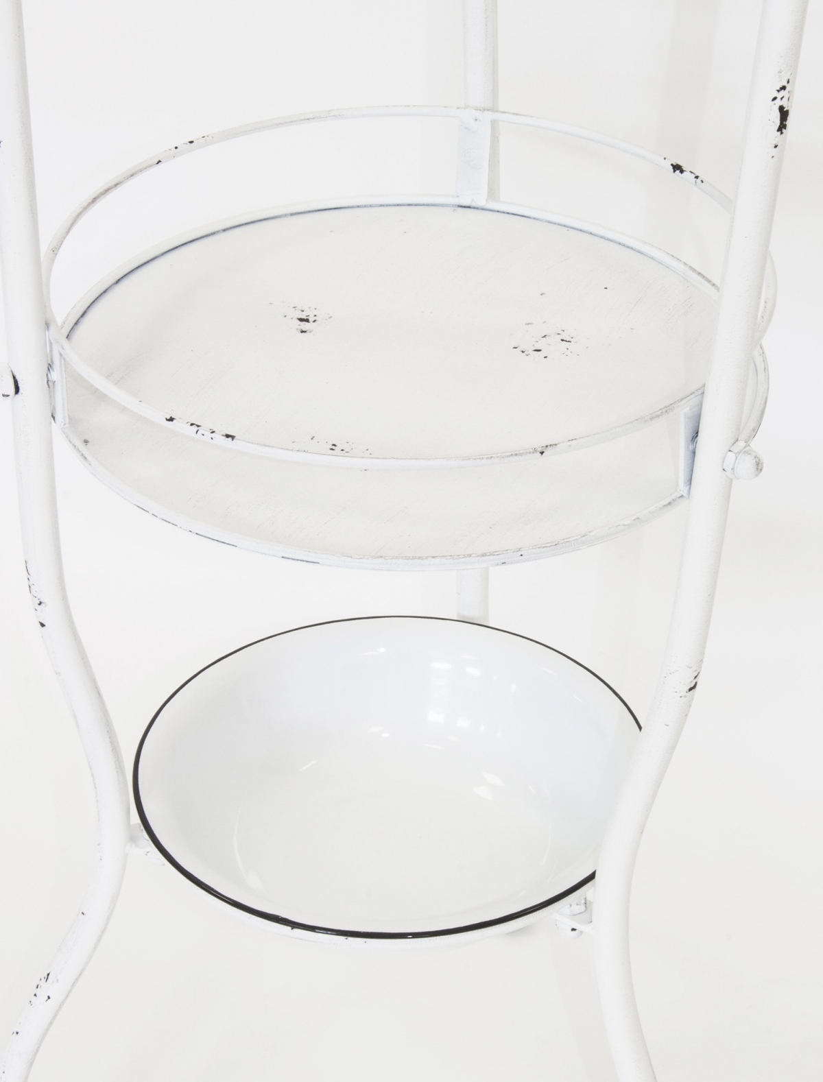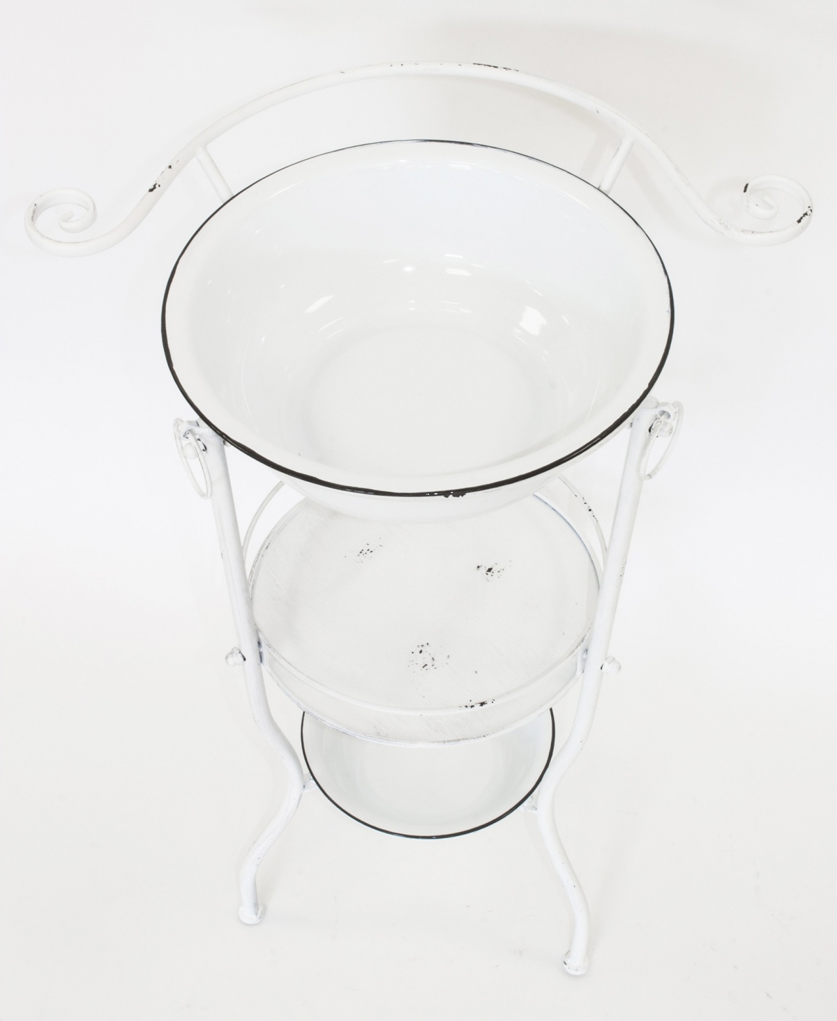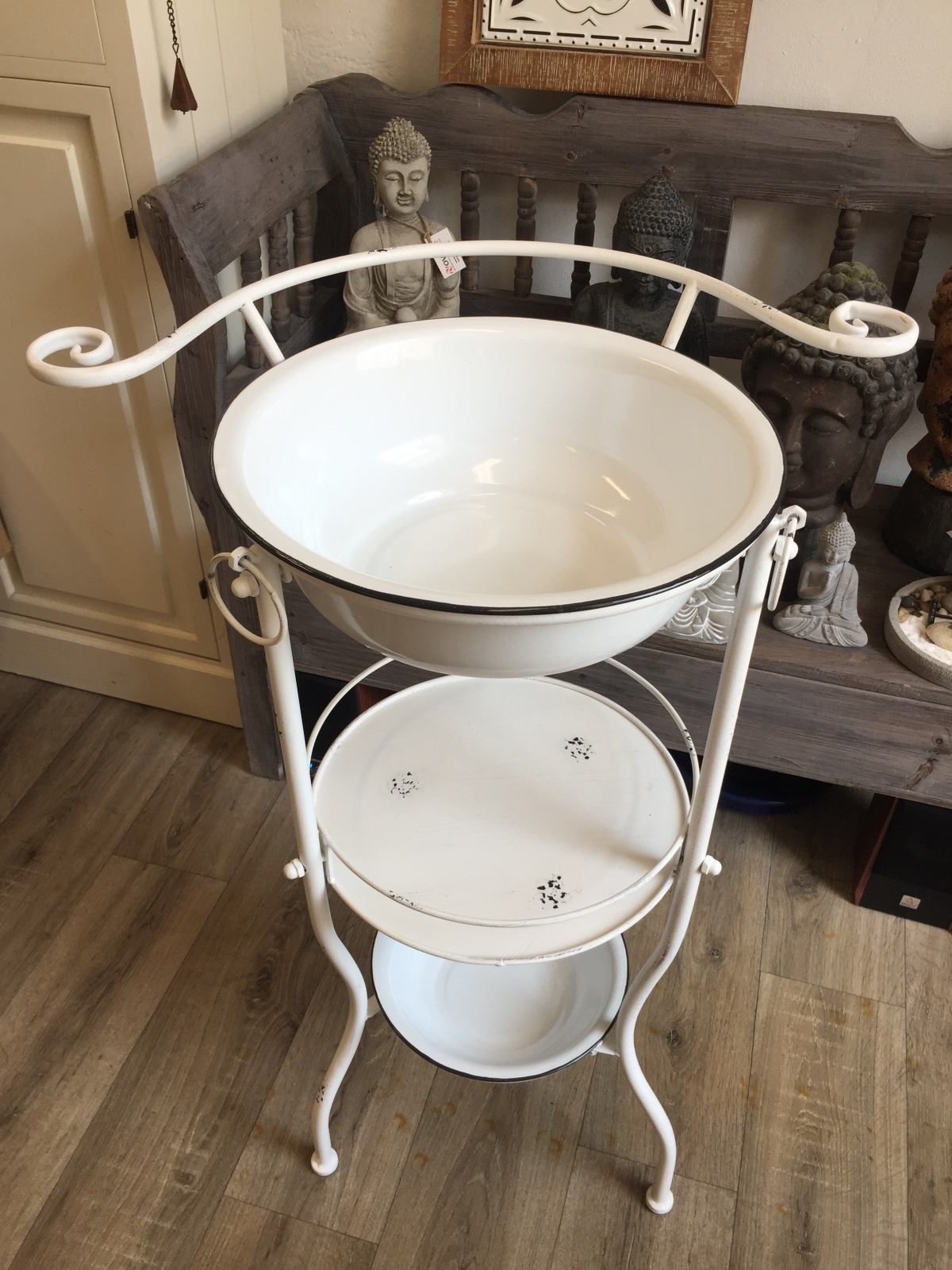 Rozměr: 58c x 85cm (šxv), průměr velkého lavoru 36cm a výška 11cm, průměr malého lavoru 24cm a výška 6cm, průměr prostřední poličky 31cm