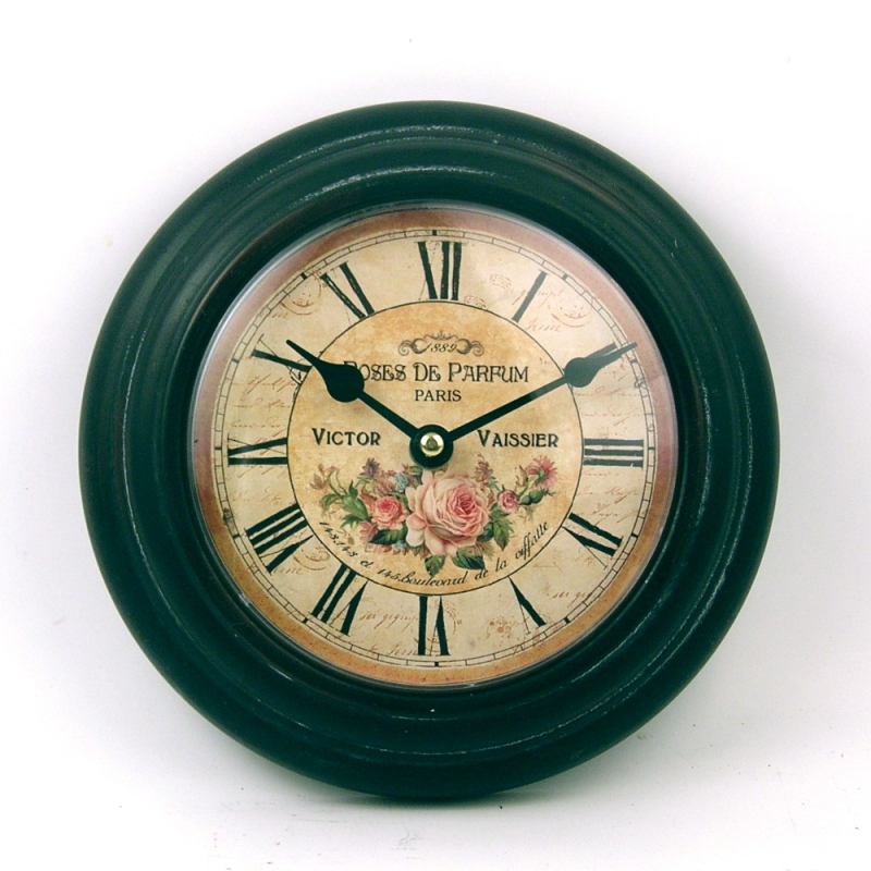 Roses de Parfum Paris 22cm. Plechové hodiny ve starém pařížském stylu, poháněné strojkem Quartz. Vnější průmer - 22cm. Barva tmavá hnědá.