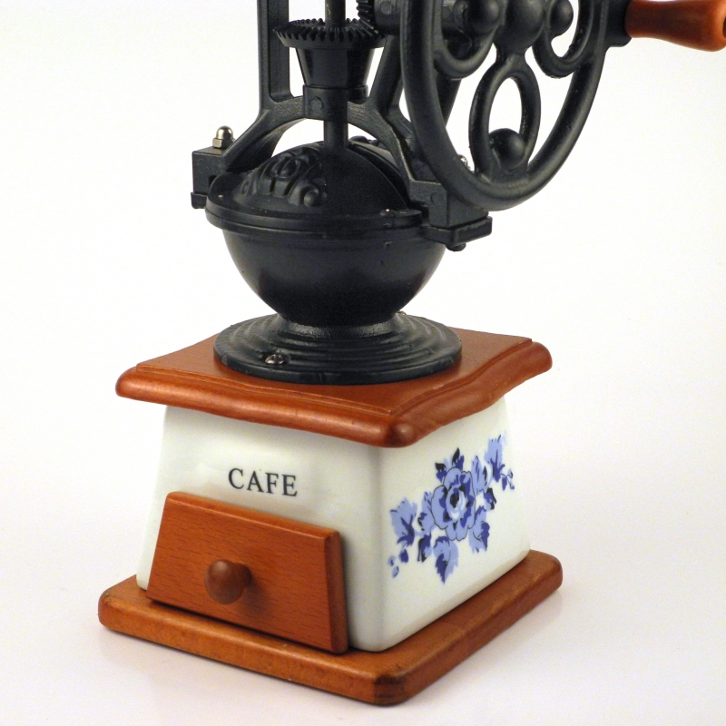 Ruční mlýnek na kávu porcelán s kolem