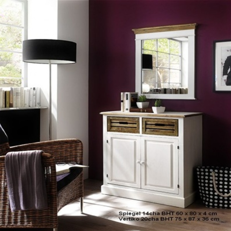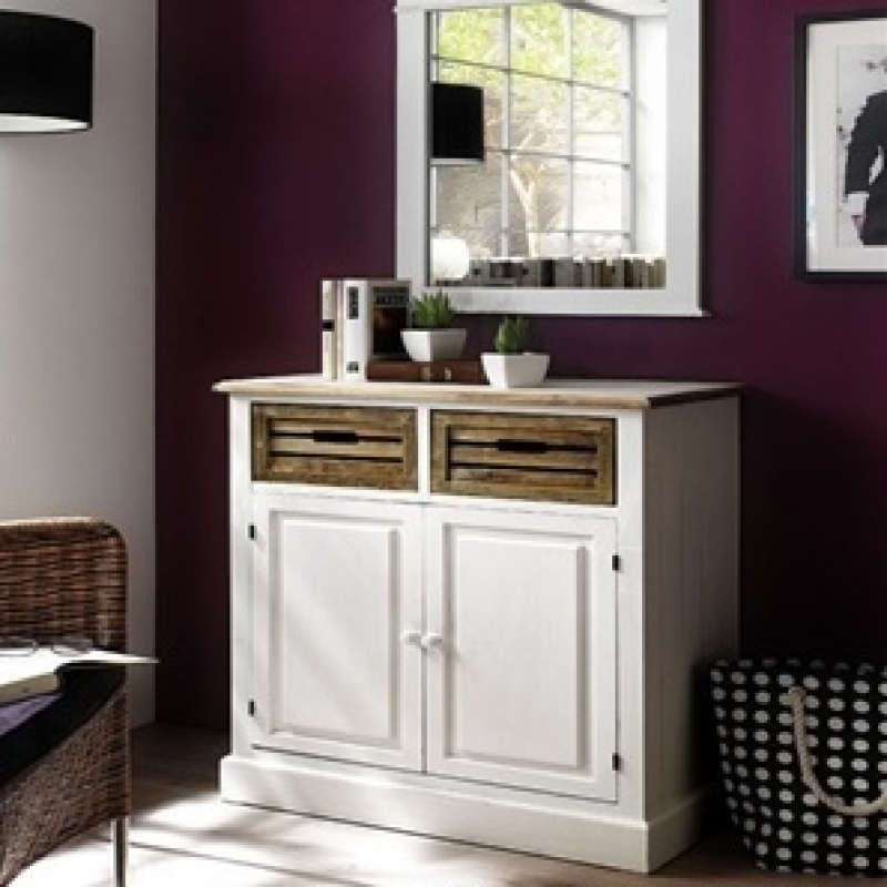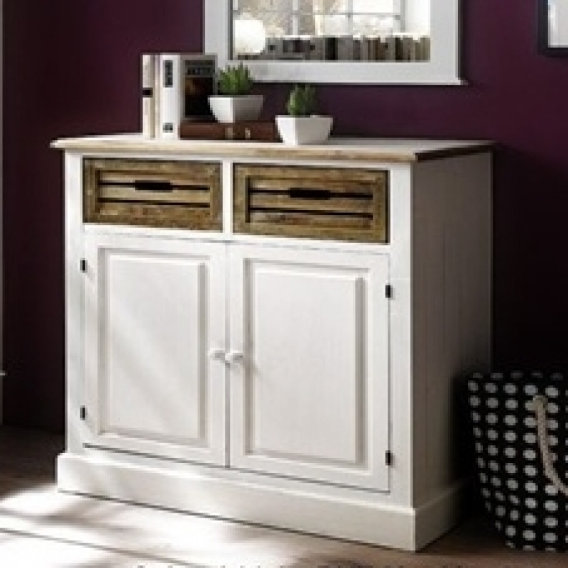 Rustikální komoda bílá 2 šuplíky + dvířka Novaline 75x87x36cm