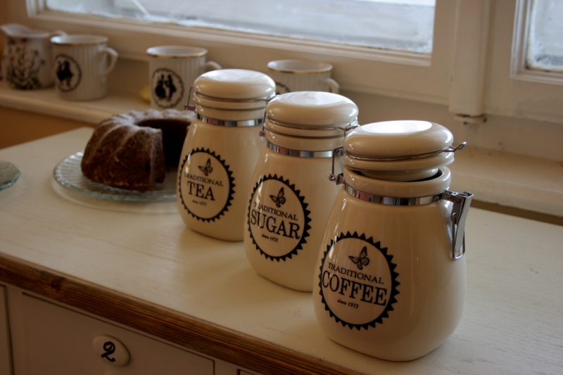 Sada dóz na potraviny s motýlkem 16cm je určena na kávu, čaj a cukr. Dózy krásně vyniknou na otevřené polici a díky neutrálním barvám se hodí do každého interiéru.