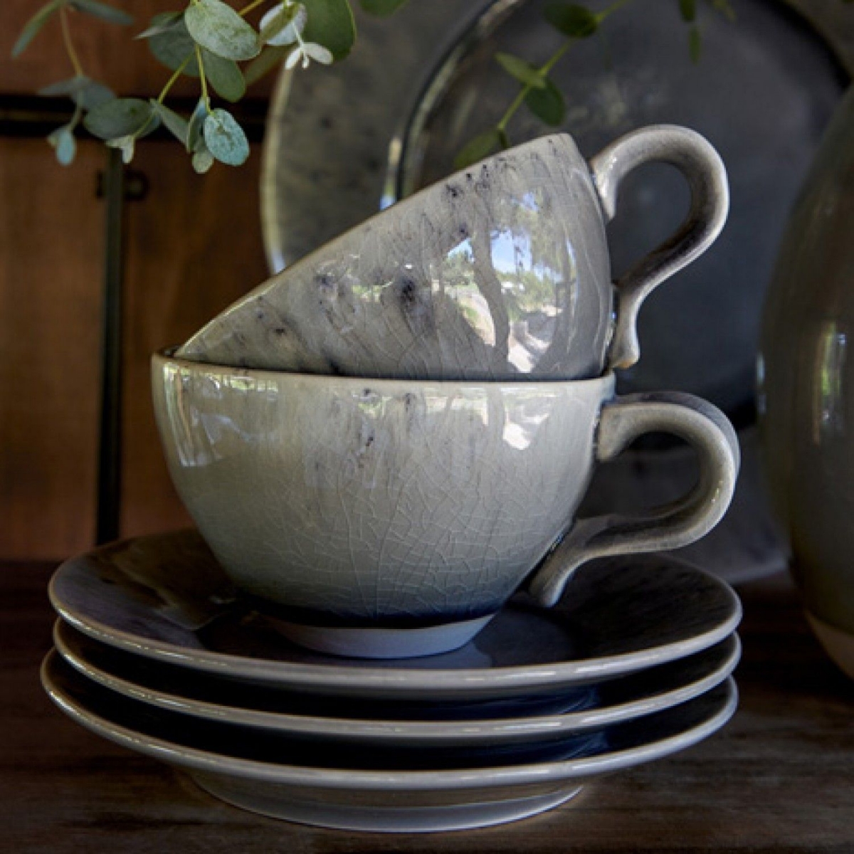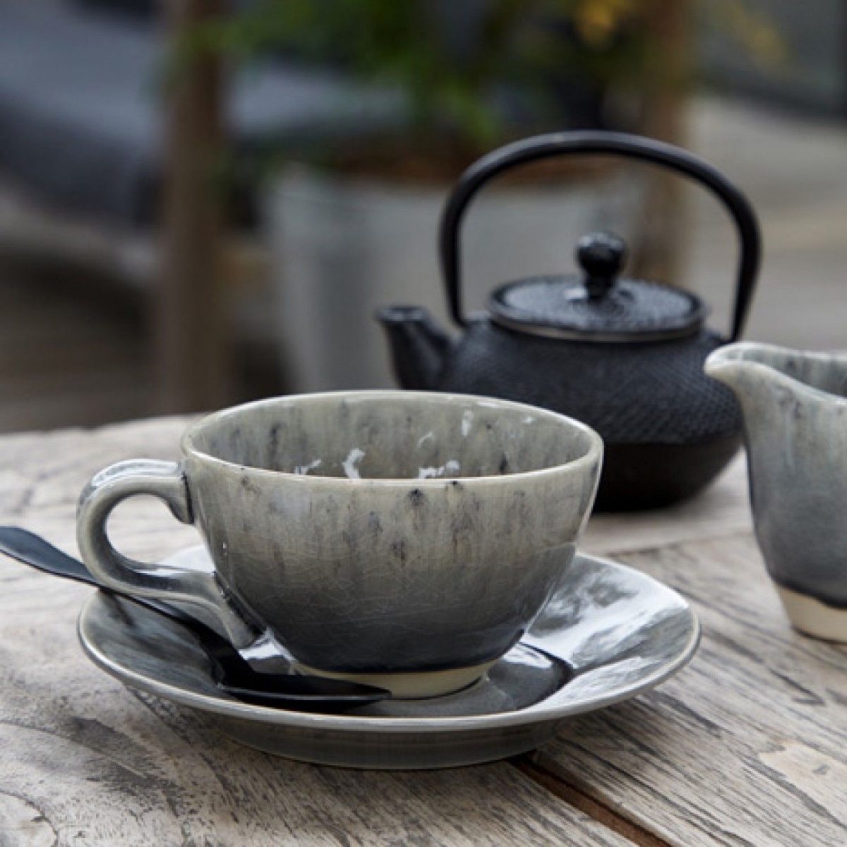 Šálek s podšálkem na kávu nebo čaj z kolekce MADEIRA, v šedé barvě