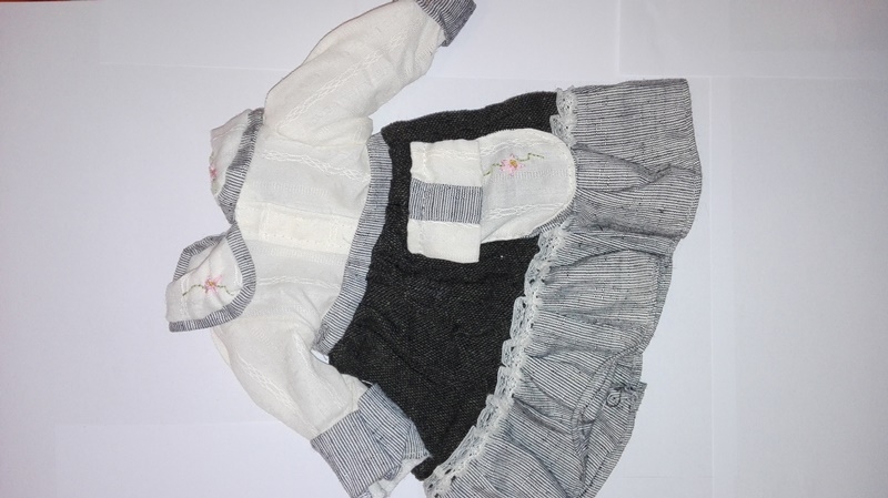 Vyřazeno z důvodu rozbité porcelánové panenky. Šaty jsou však použitelné a nové.