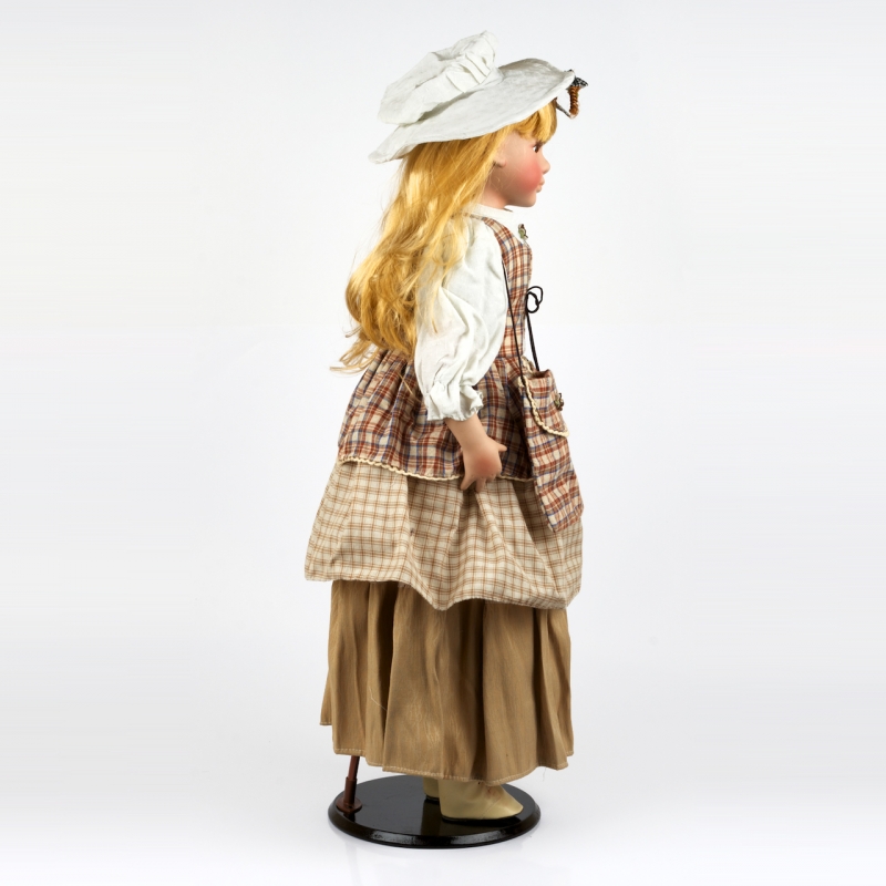 Porcelánová panenka Iva, patří mezi větší, které překrásně doplní stylový interiér. Součástí balení je stojánek. Panenka je zabalena v dárkové krabici.
