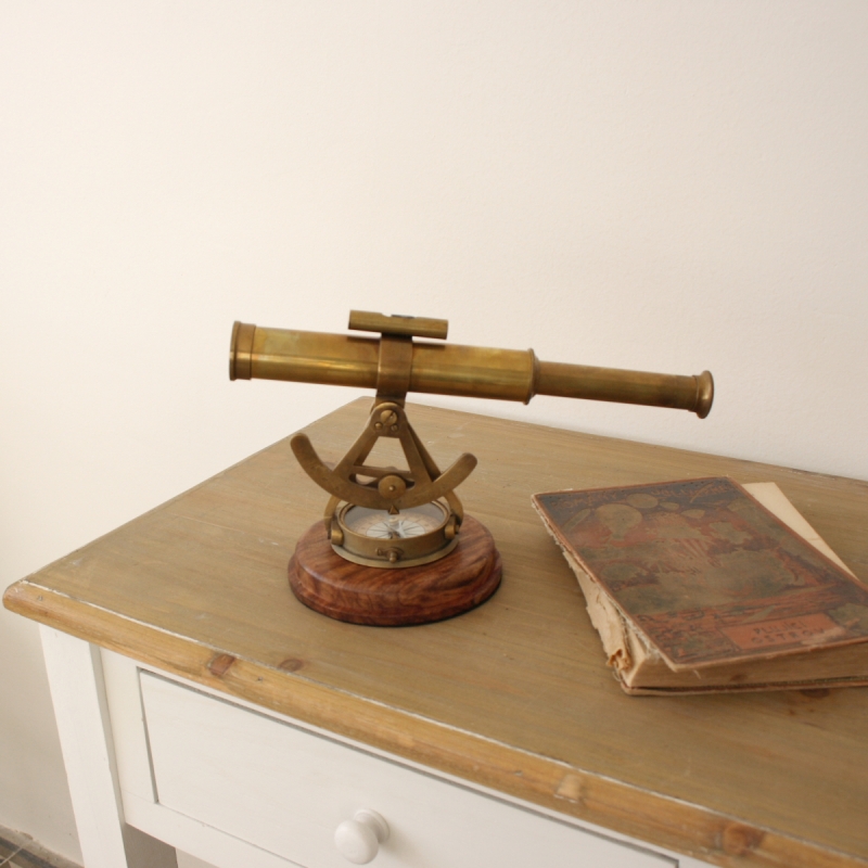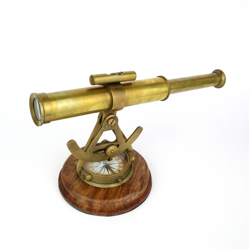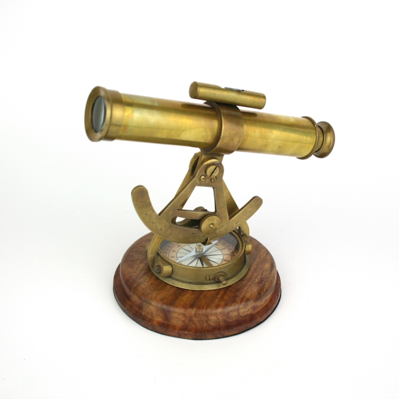 Sběratelský předmět teodolit s kompasem 18x23cm je přístroj pro měření úhlů v horizontální i vertikální rovině, aby bylo možné nastavit kurz. V roce 1571 byl vynalezen angličanem Thomasem Diggesem.