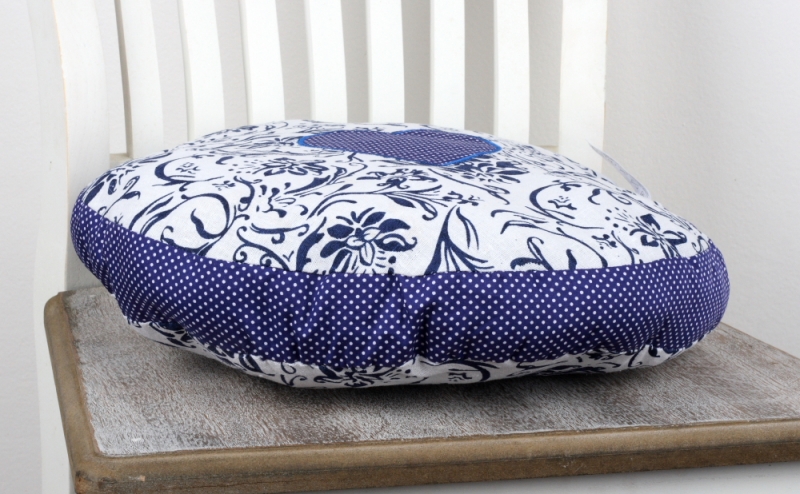 Kulatý sedák na židli je silně polstrovaný a vy tak budete mít dokonalé pohodlí. Je ušit z látek s motivem puntíků a květin, které krásně spolu krásně ladí.