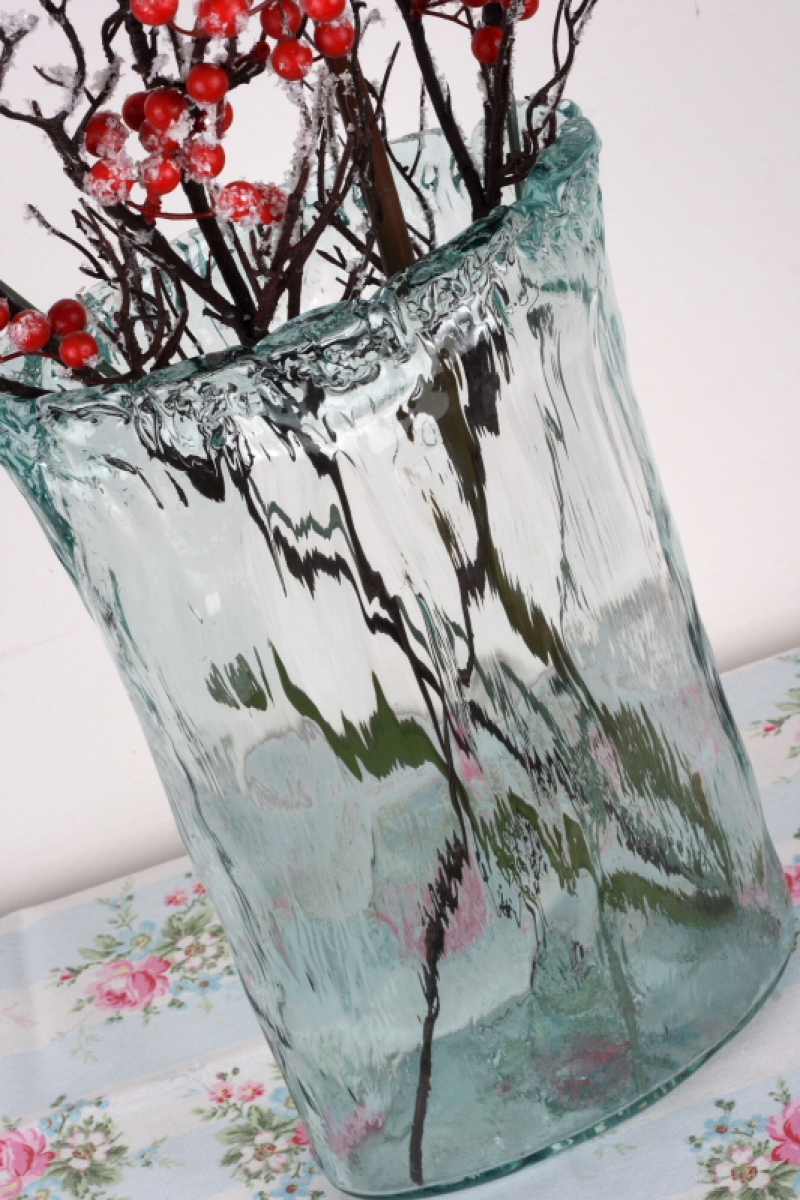 Povrch skla a zdobené okraje připomíná zimní námrazu na okně. Vázu můžete využít na živé i umělé květiny a darovaný pugét budete mít už vždy kam odložit.