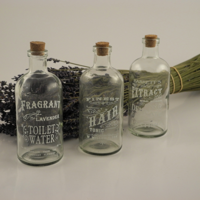 Skleněné lahvičky do koupelny Antique (sada 3ks)