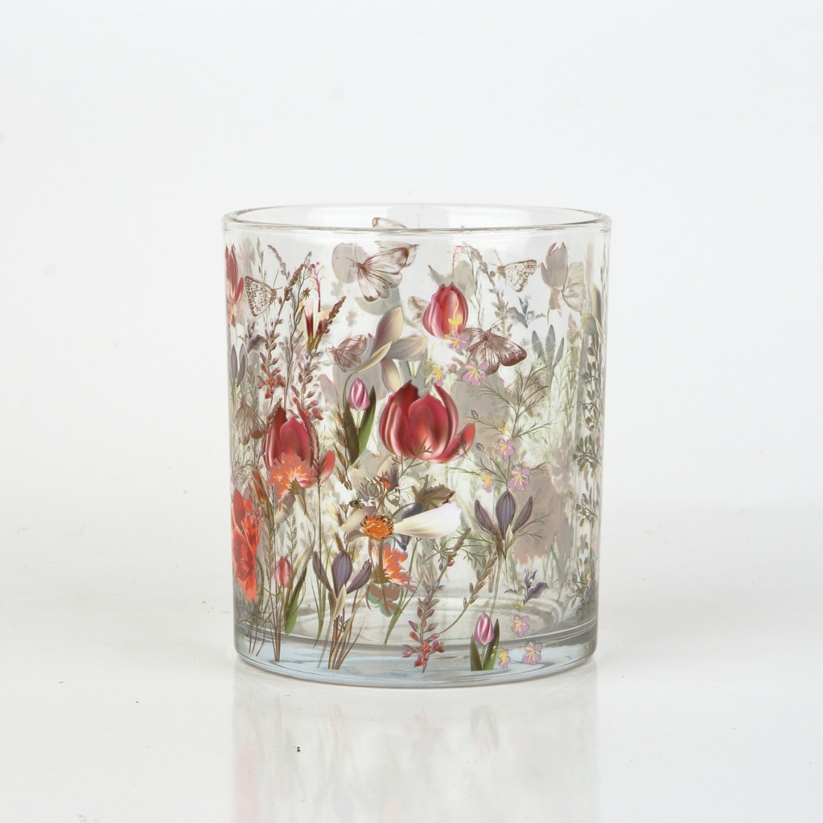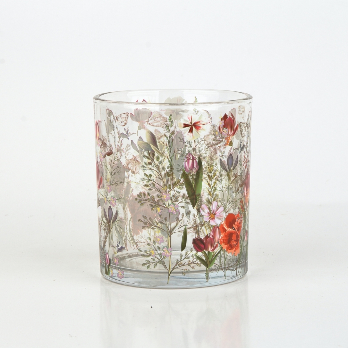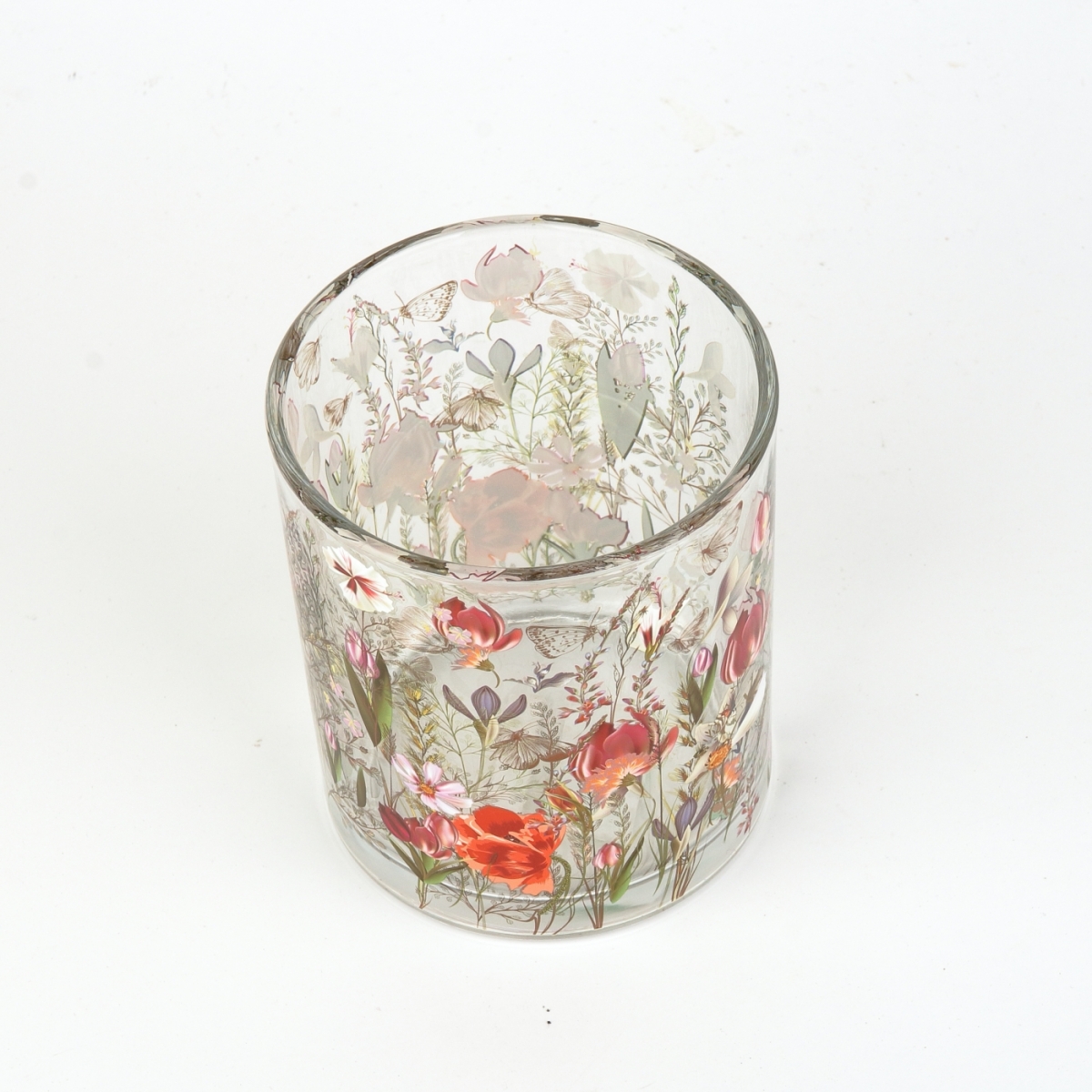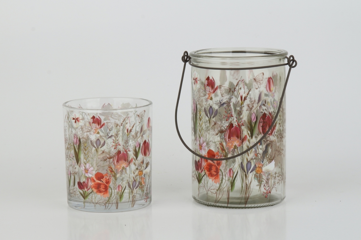 Skleněný svícen malovaný, je určený pro umístění čajové svíčky.
