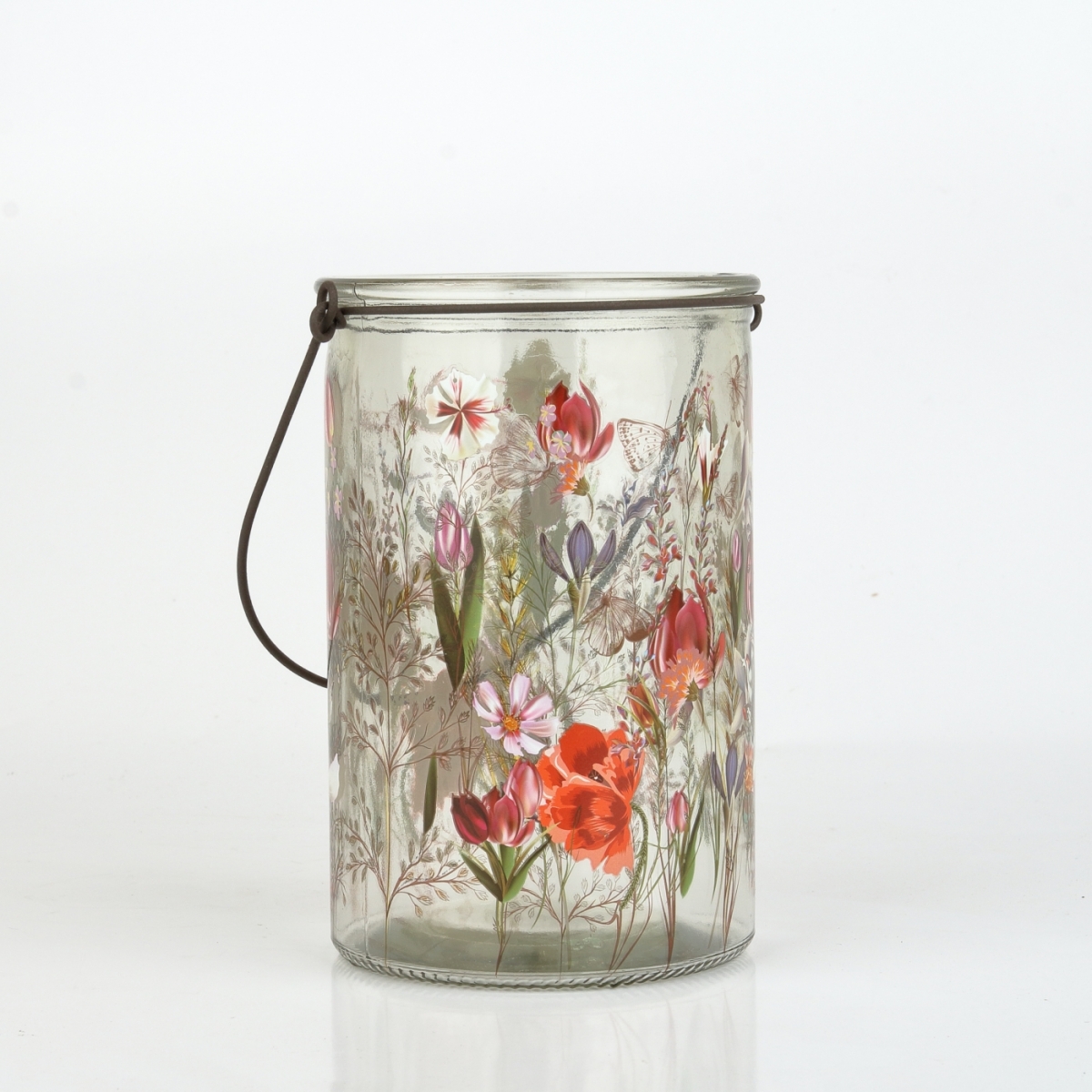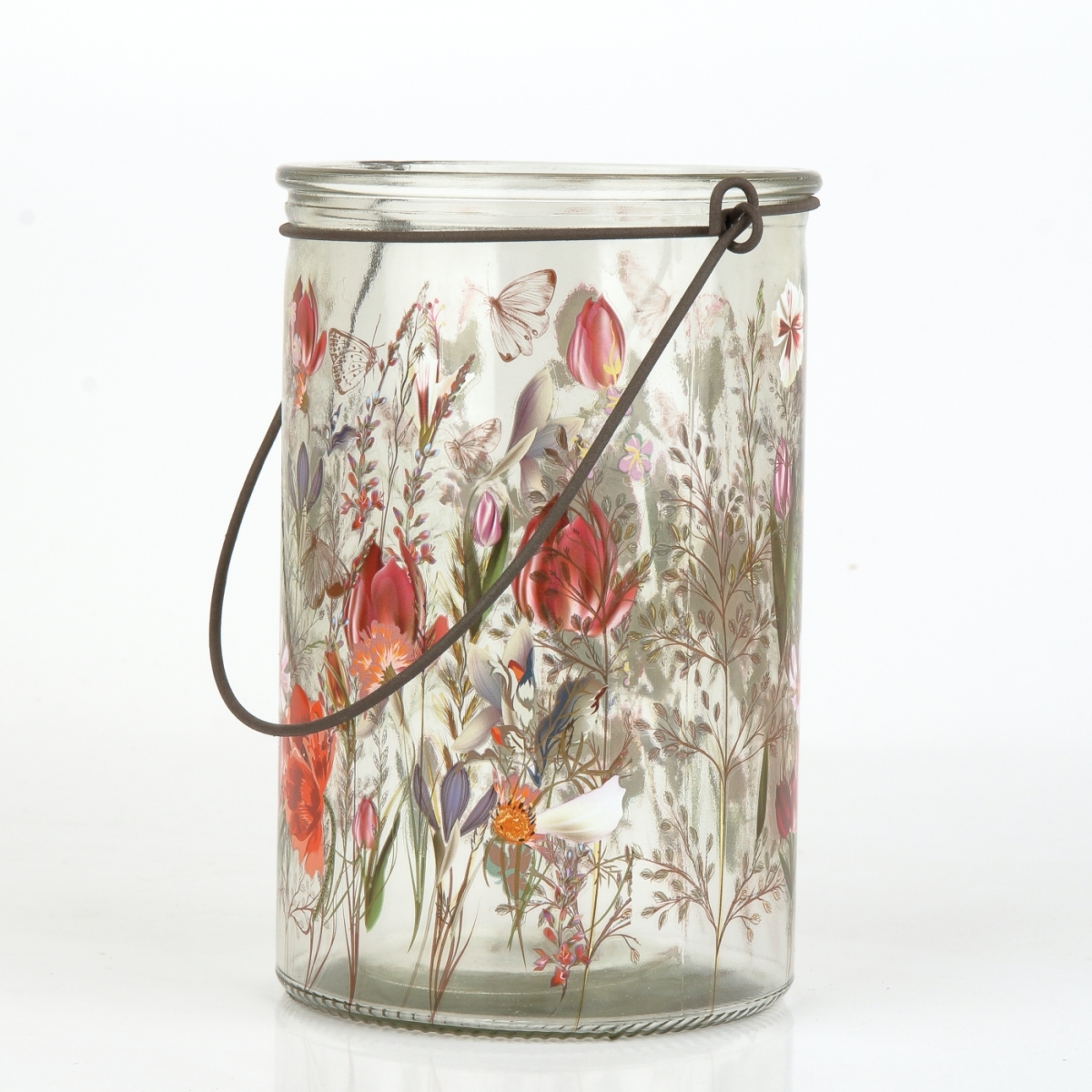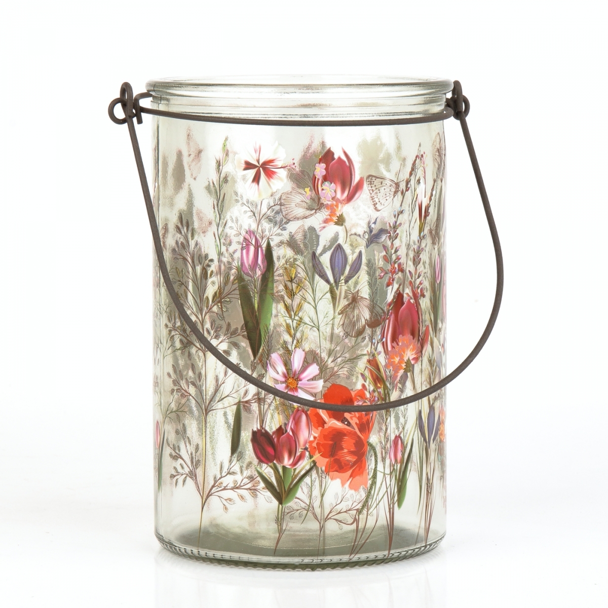 Skleněný svícen malovaný lučními travami a květy, vždy navodí pohodovou atmosféru pro chvíle odpočinku a relaxace.