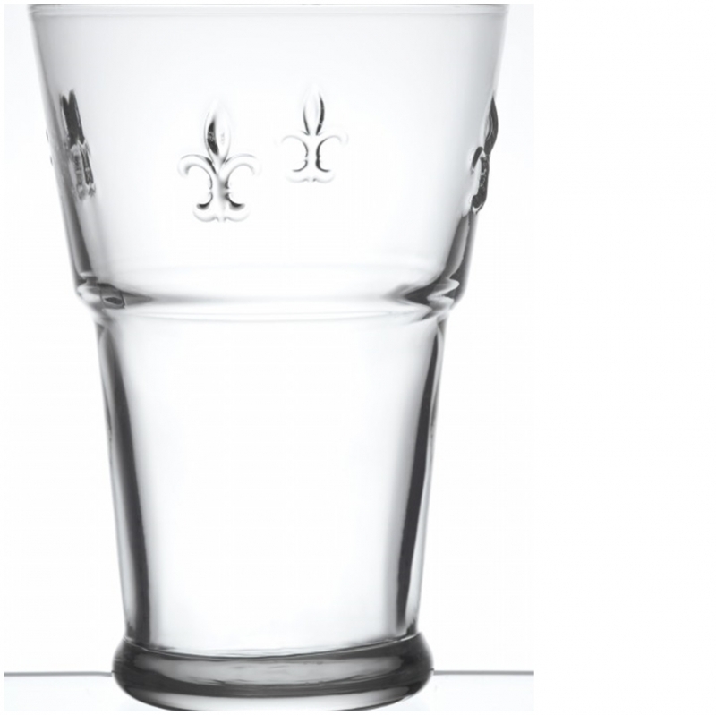 Výrobek z francouzské sklárny La Rochére. Korbel je vyroben ze silného skla - zdobený motivem medailonků v zámeckém stylu - na vodu, džus nebo třeba pivo.