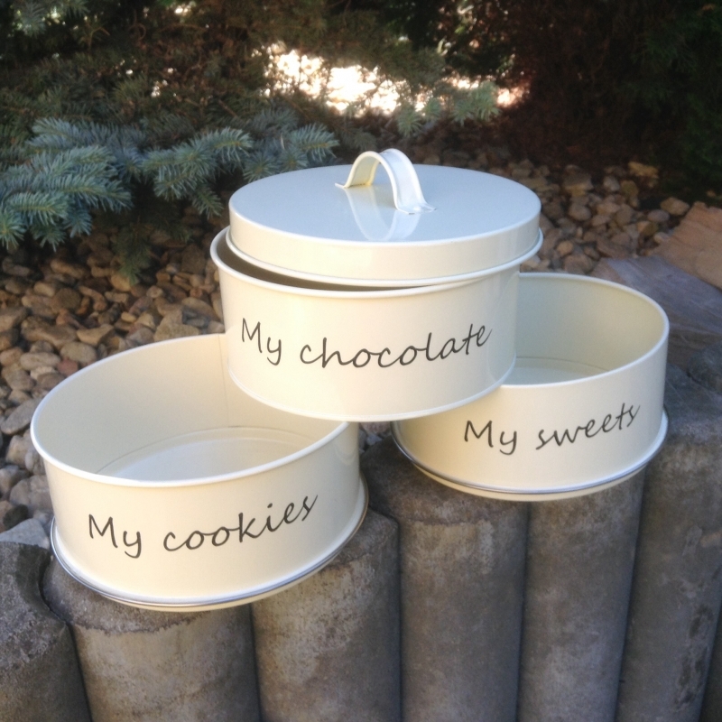 Rozměry: průměr 25cm, výška jedné dózy 18cm