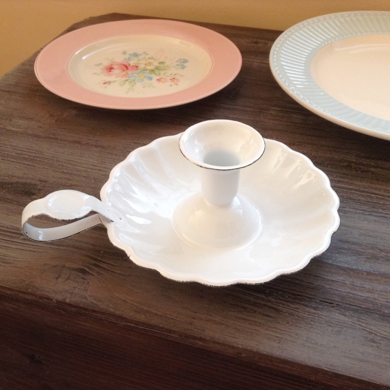 Smaltované doplňky dokonale zapadají do venkovského stylu bydlení. Svícen navíc vykouzlí romantickou atmosféru.