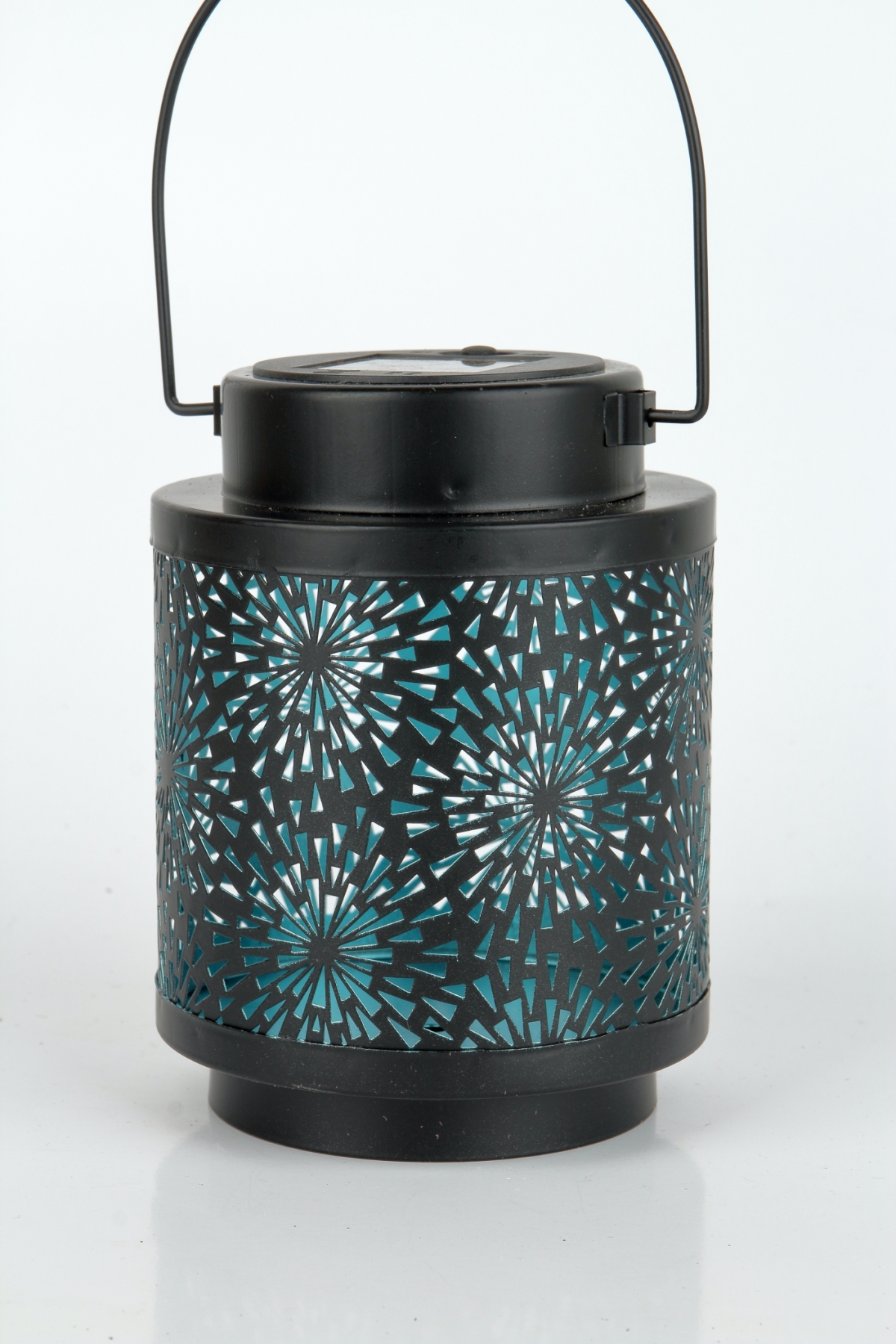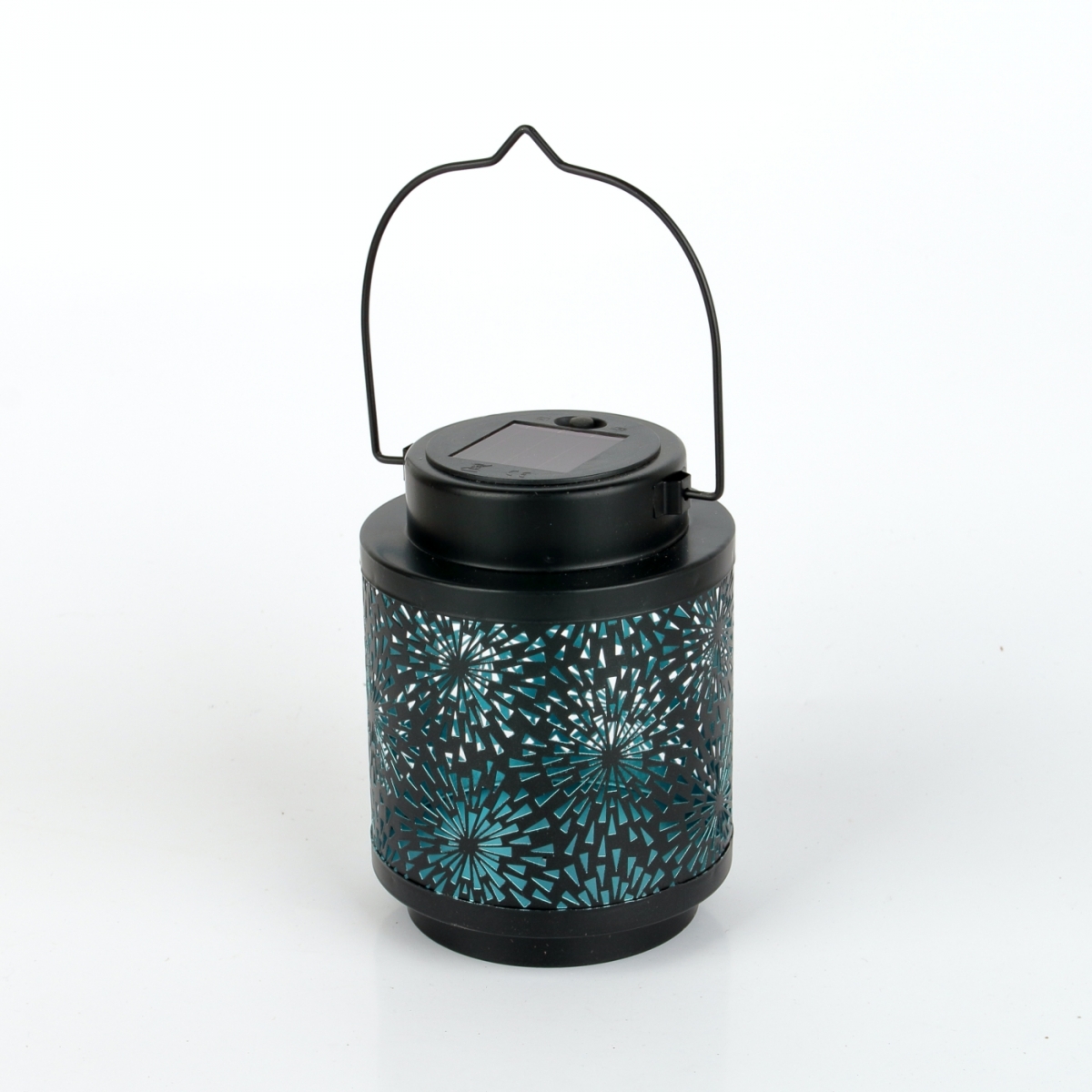 Solární lucerna má vnitřní stěny zbarbevené do odstínu modré a proto světlo z lucerny vytváří právě tento odstín.