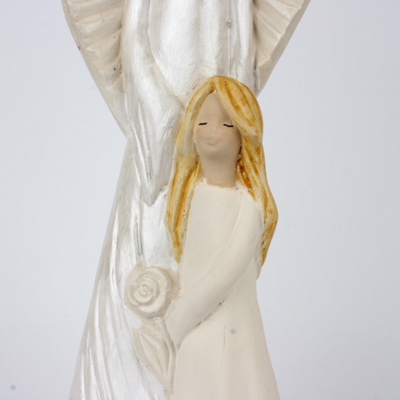 Soška anděla s malou holčičkou je nežná, romantická a působí velmi křehce.