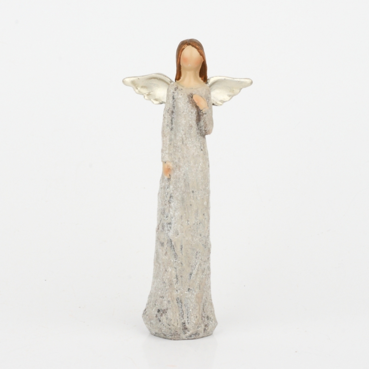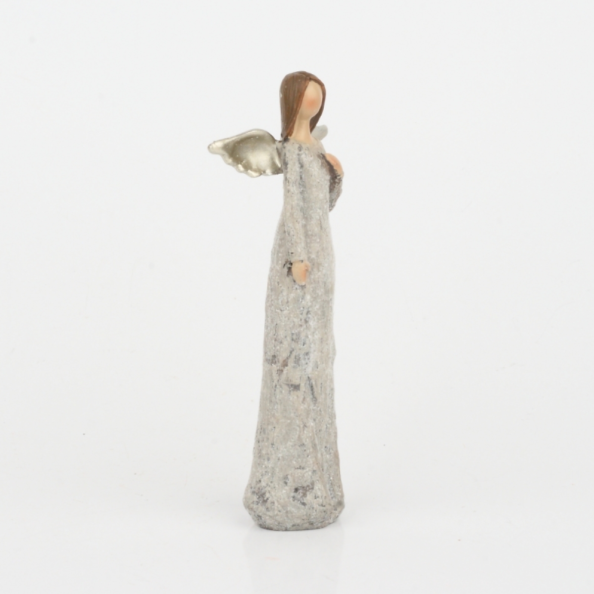 Soška anděla se třpytivými šaty Ruka na srdci 13cm