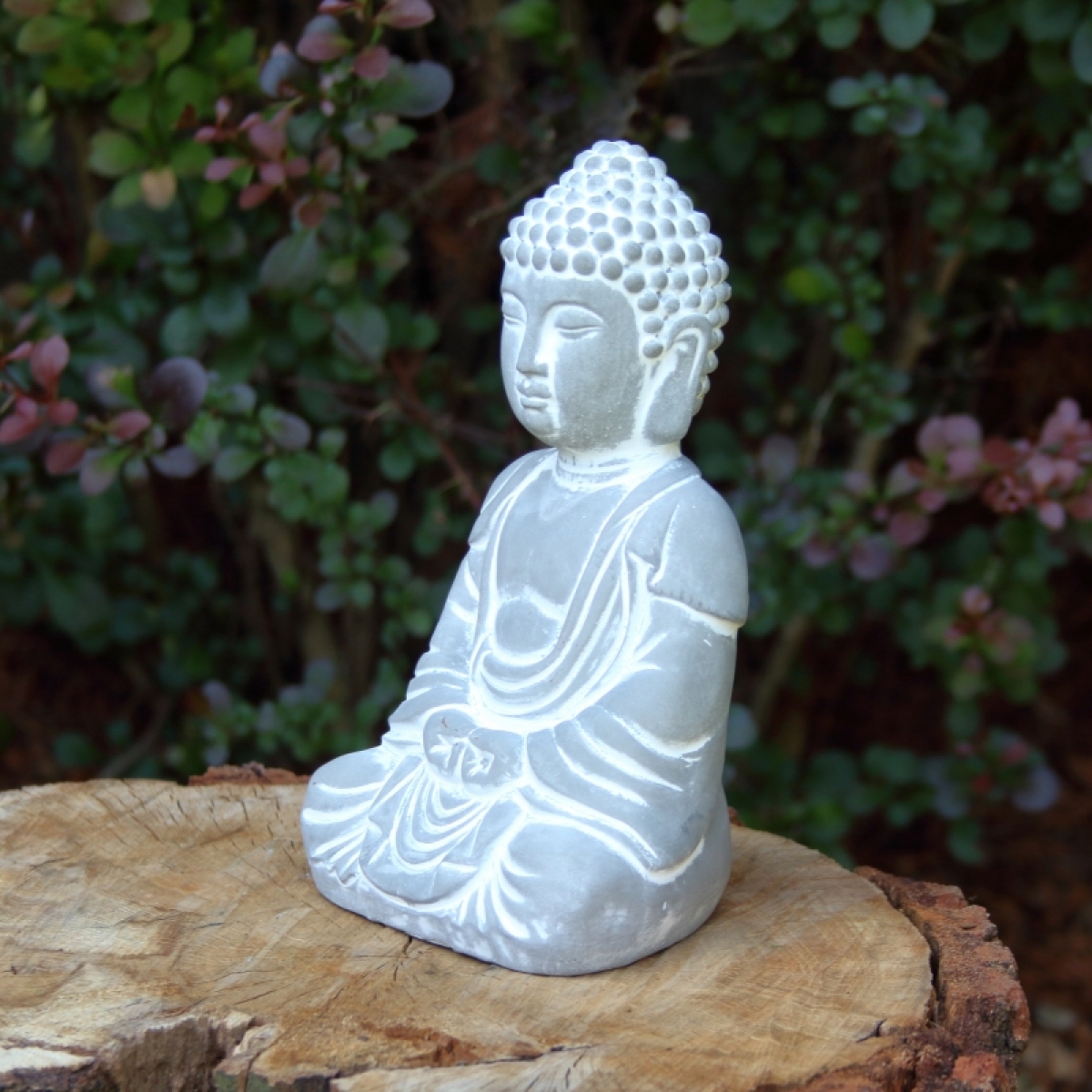 Soška Buddha je vyrobená z betonu - velmi odolného materiálu, proto soškou můžete ozdobit i vaši zahradu nebo terasu.