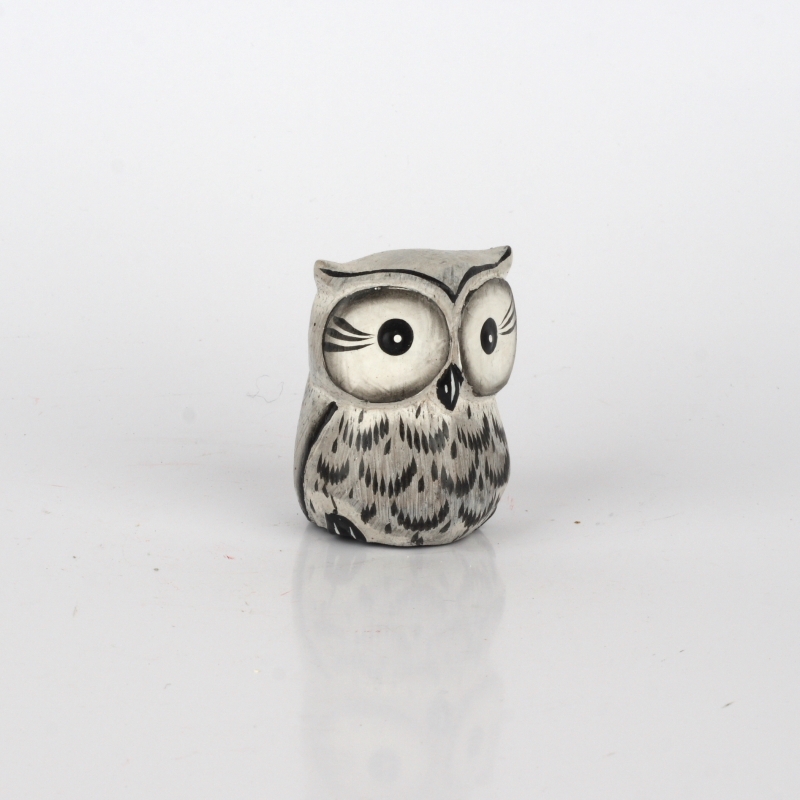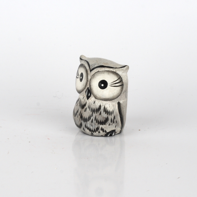 Soška dřevěná sova bílá 6cm pro milovníky drobných bytových dekorací.