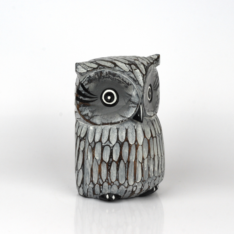 Soška je vyřezána z lehkého dřeva s patinou. Soška sovy je krásným dárkem pro vaše blízké. Je v nabídce hned v několika velikostech a barvách.