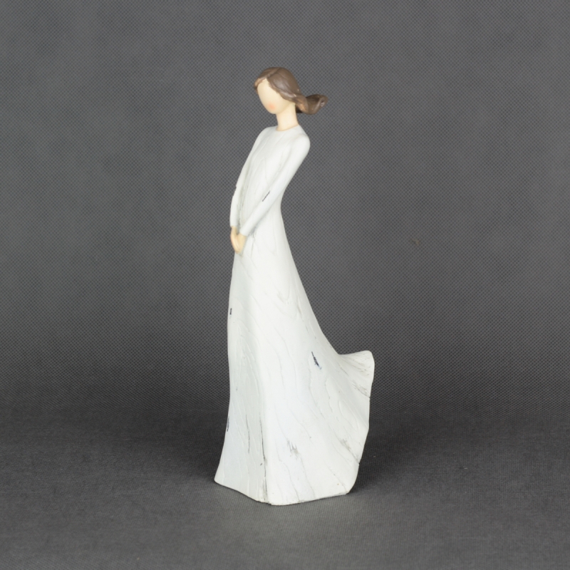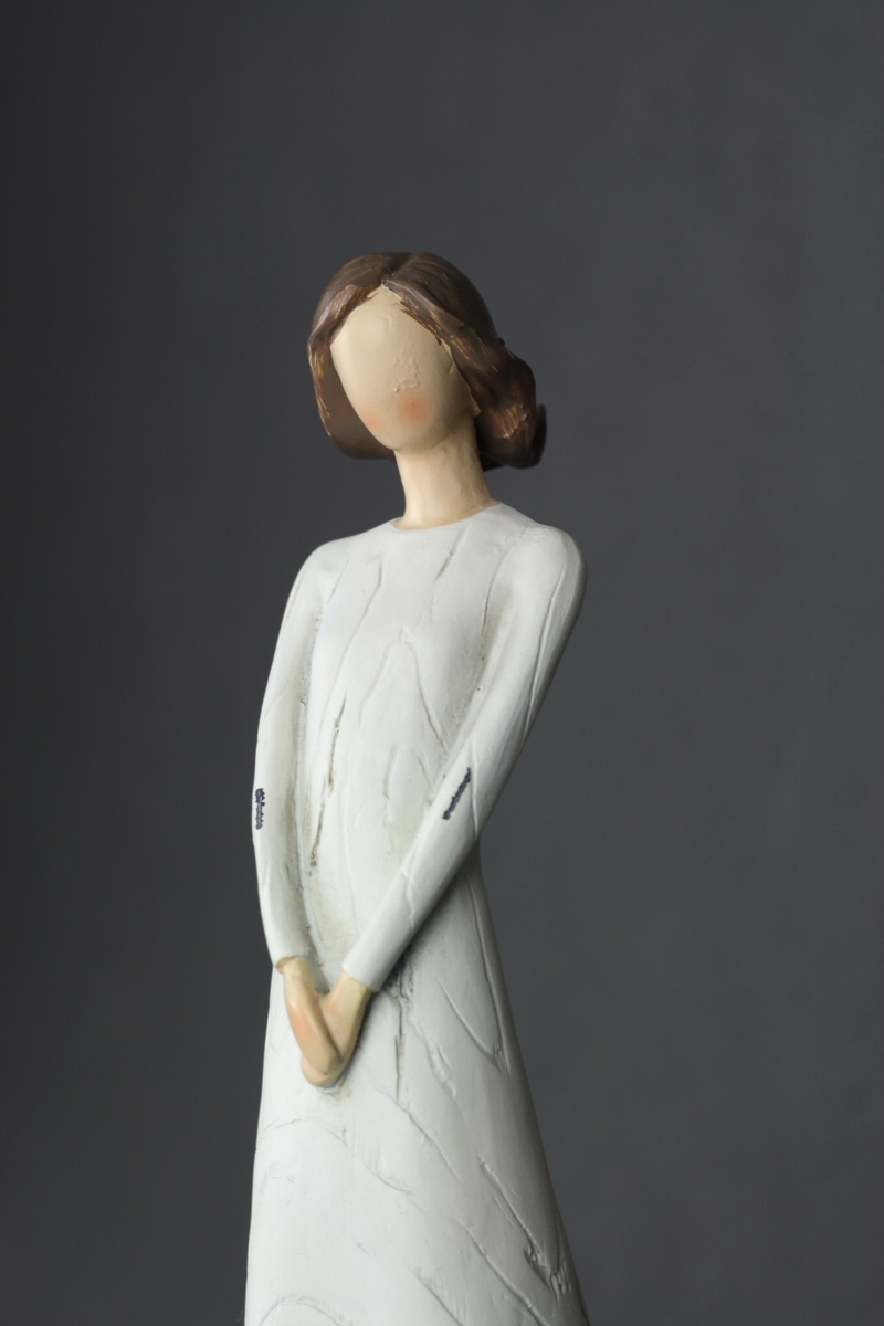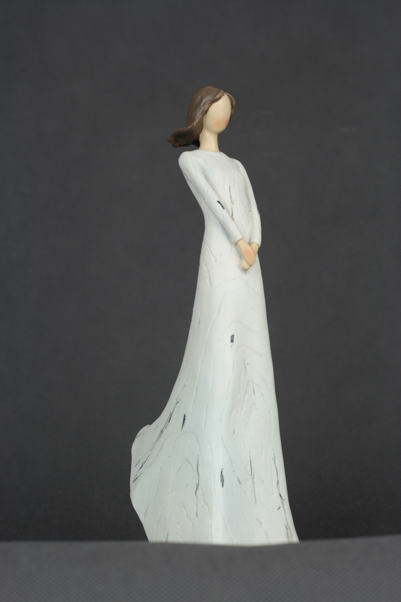 Soška Křehká duše 25,5cm má podobu štíhlé slečny v dlouhých bílých šatech, která opravdu působí velmi křehce a zranitelně.