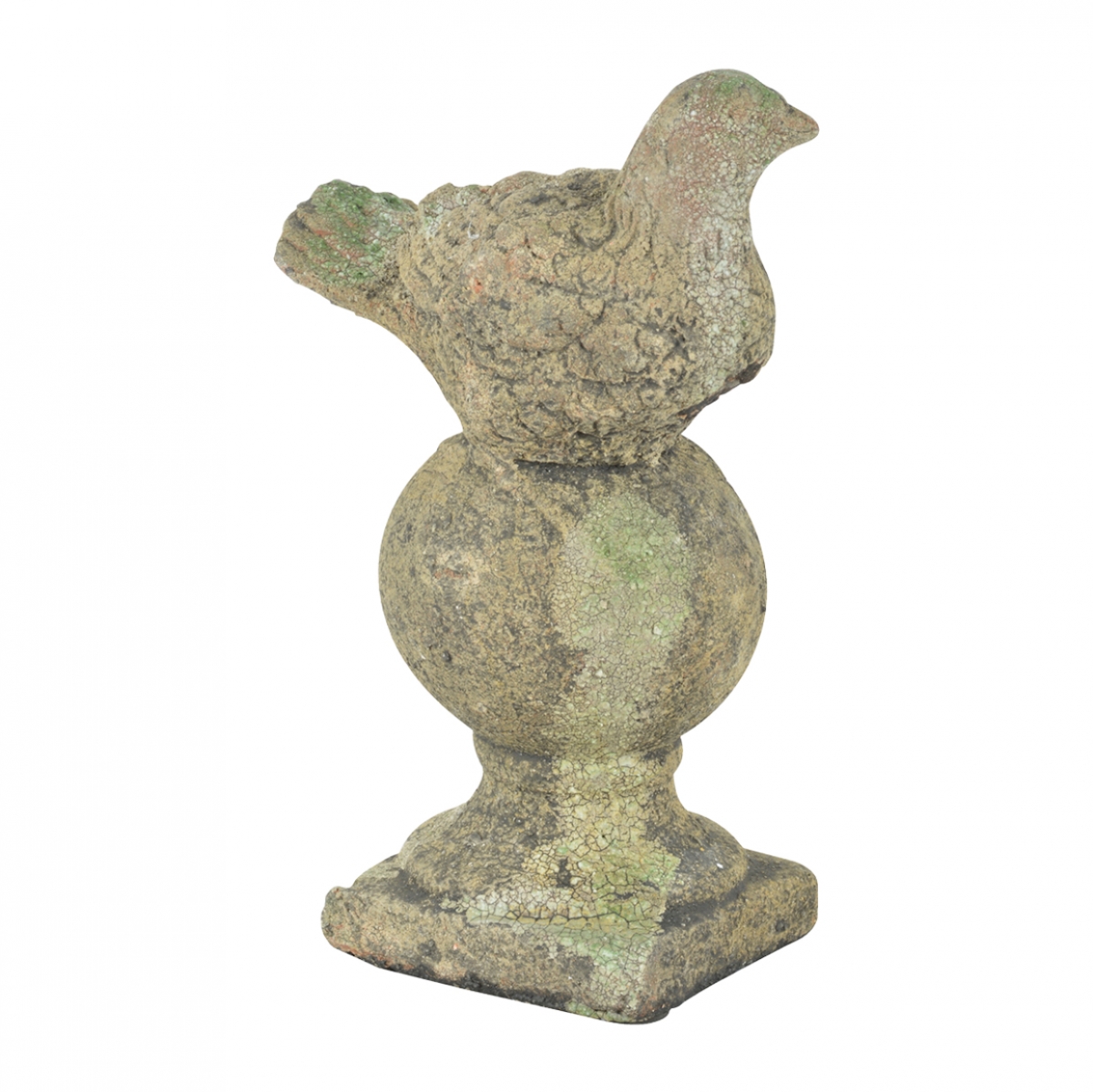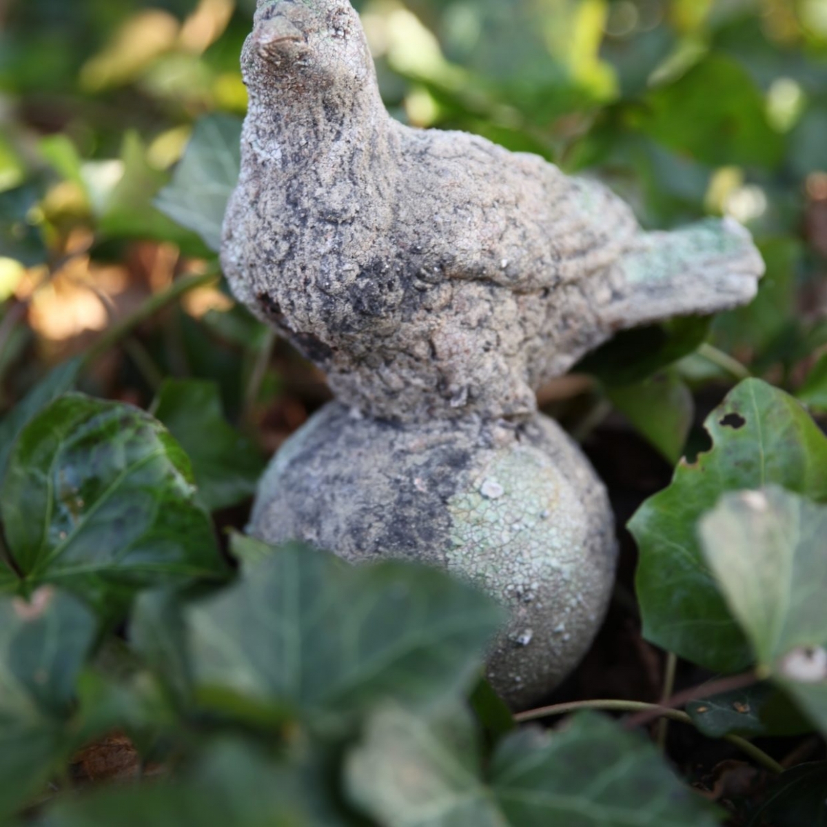 Soška působí dojmem, že je vytesána z kamene, porostlá lišejníky s letitými usazeninami. Je však vyrobena z keramiky a opatřena velmi realistickou patinou. Vytvořte si s její pomocí romantické zákoutí s nádechem nostalgie.