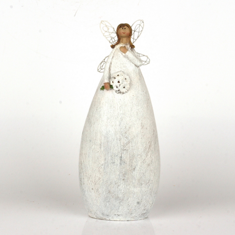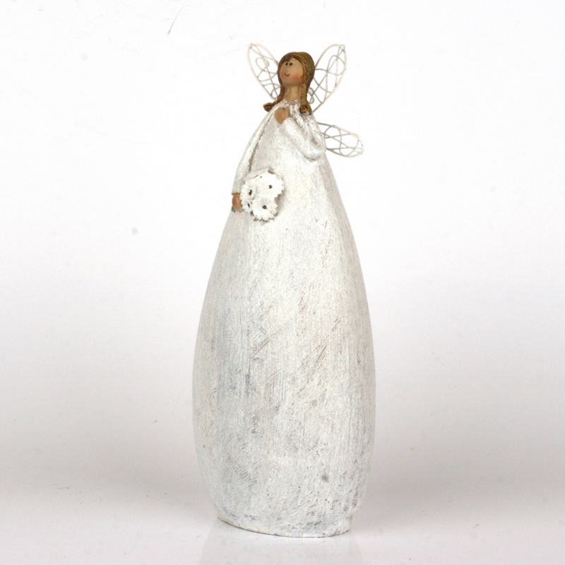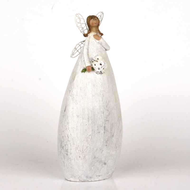 Víla v dlouhých bílých šatech s jemným třpytem bude střežit váš domov ve dne v noci. Drží v rukou kytici kopretin a patří do kolekce plné pohádkových víl. V kategorii naleznete sošky v různých velikostech i barvách.