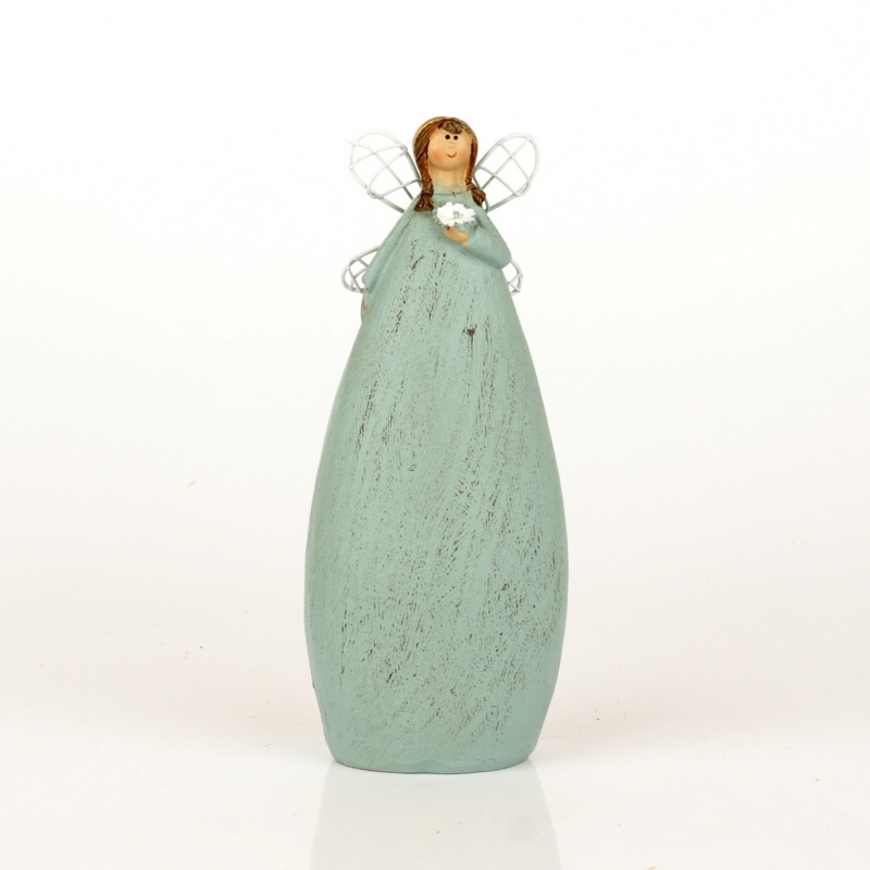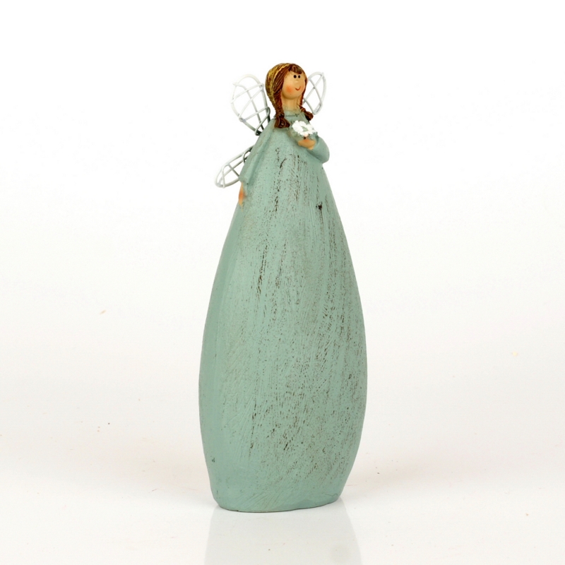 Soška víla v modrých šatech Ruka na srdci 15cm