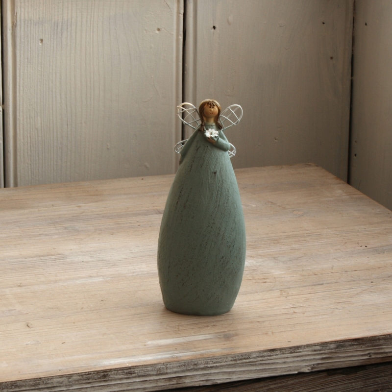 Soška víla v modrých šatech Ruka na srdci 15cm pro všechny romantické a něžné duše, které se rády obklopují doplňky, které zahřejí na duši.