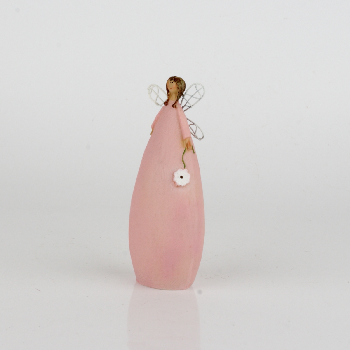 Soška víla v růžových šatech s květinou 15cm pro všechny romantické a něžné duše, které se rády obklopují doplňky, které zahřejí na duši.