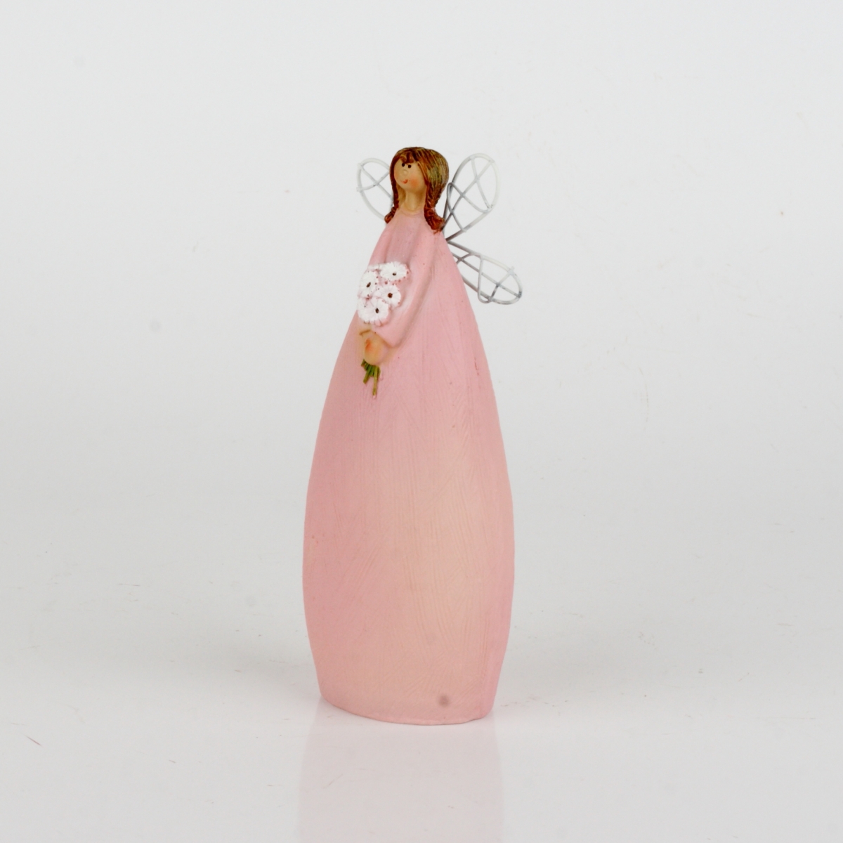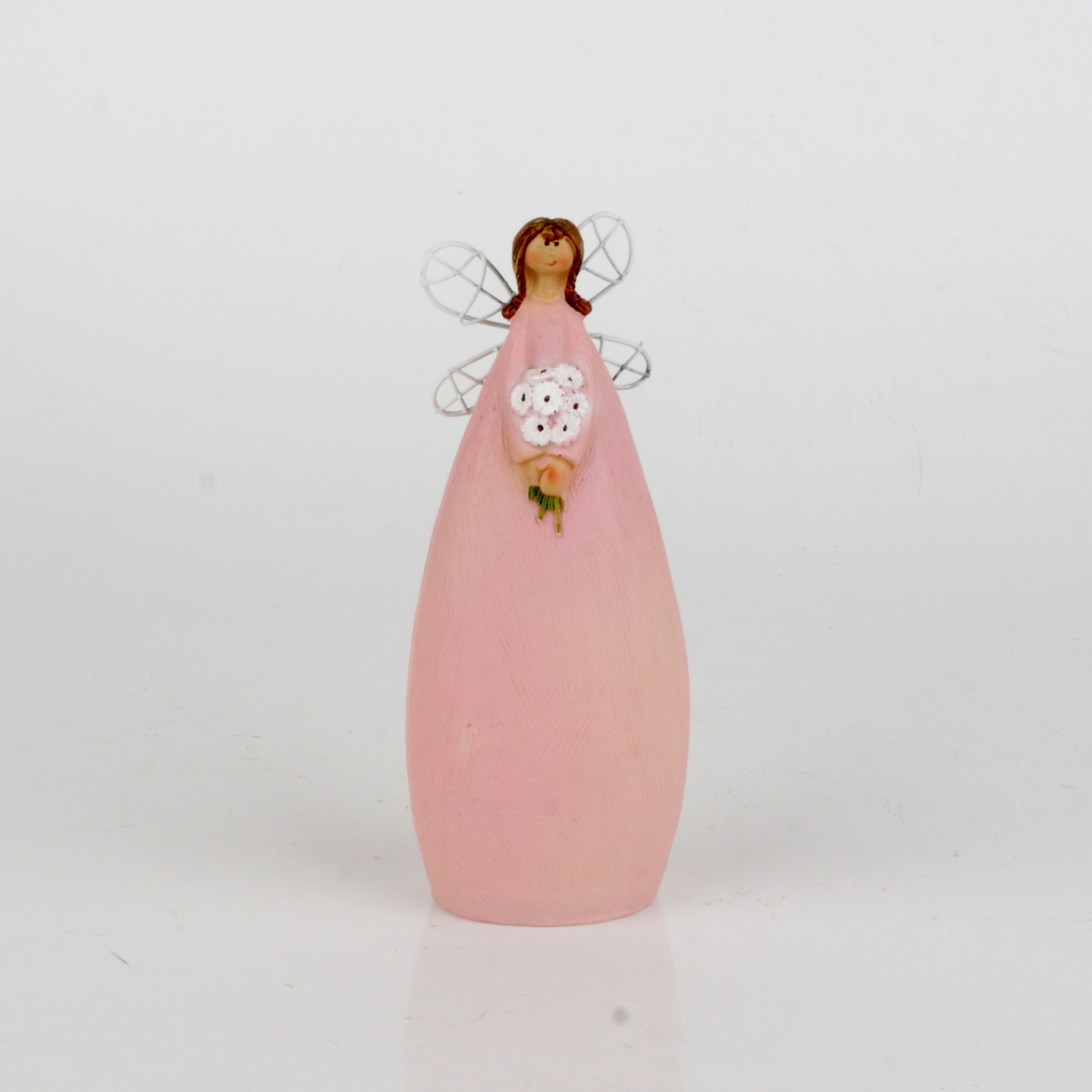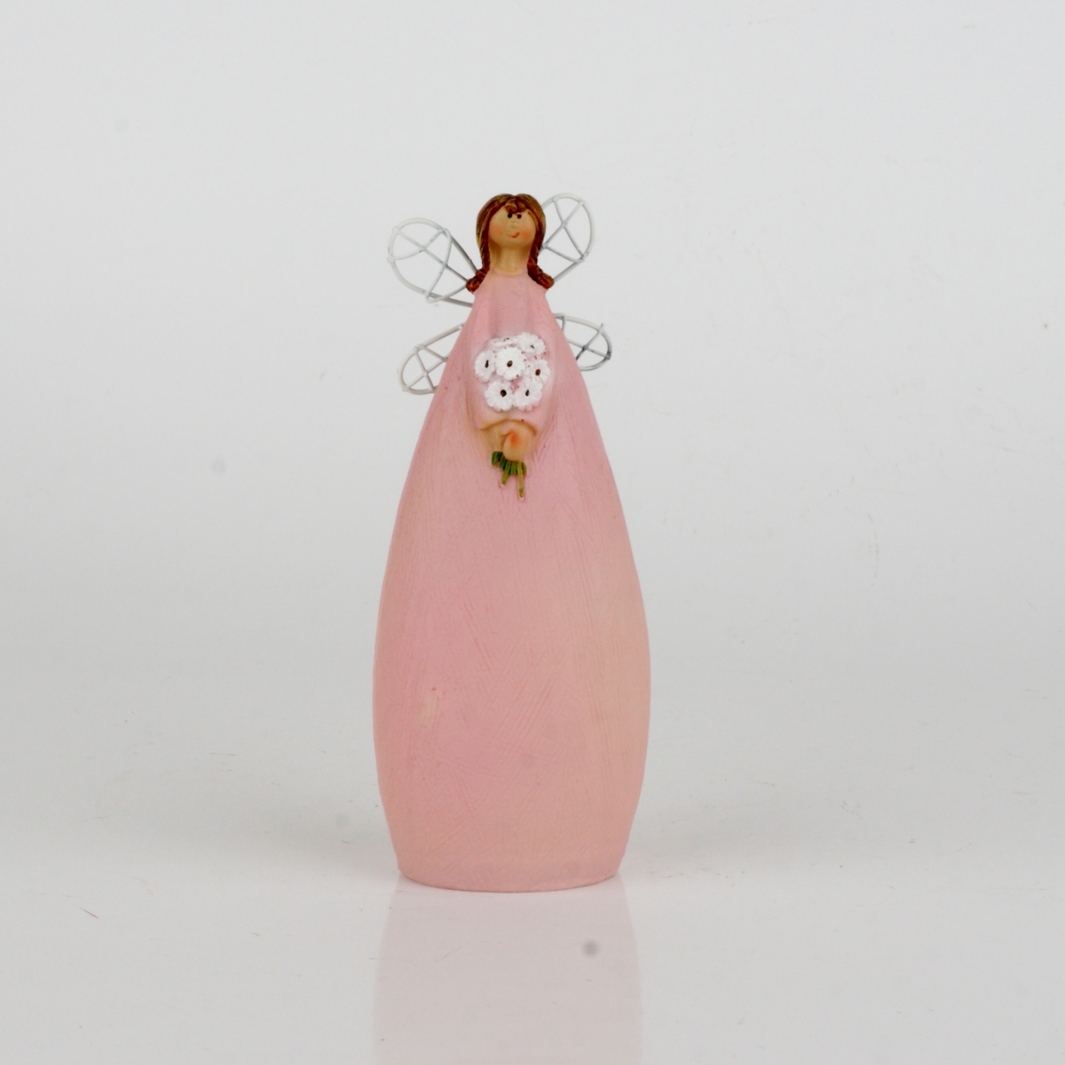 Soška víla v růžových šatech s kyticí 15cm pro všechny romantické a něžné duše, které se rády obklopují doplňky, které zahřejí na duši.