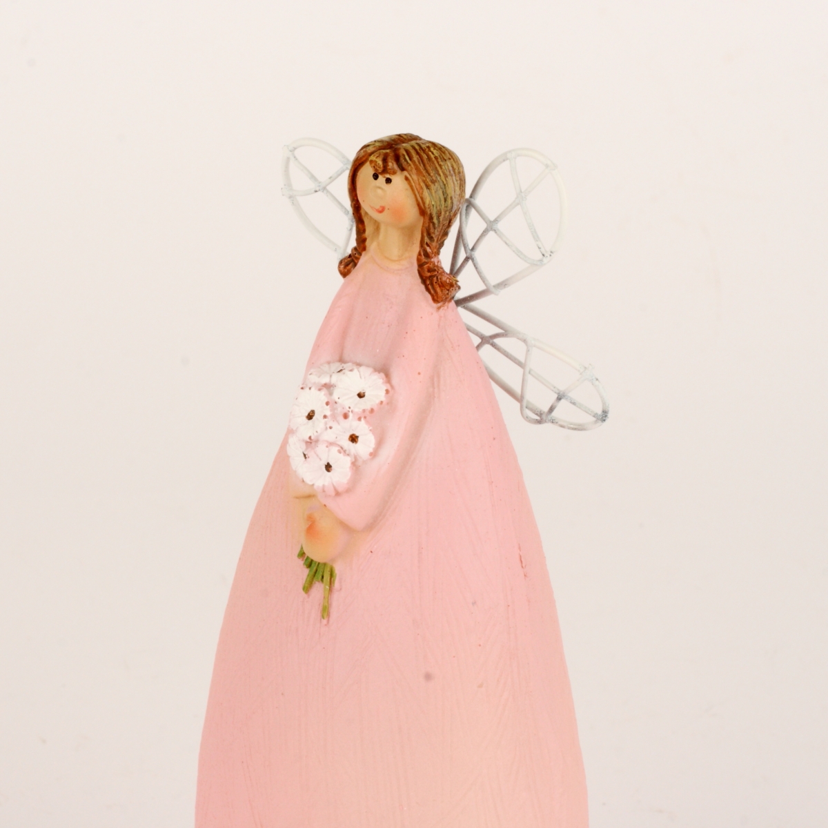 Víla v dlouhých růžových šatech s jemným třpytem bude střežit váš domov ve dne v noci. Drží v rukou kytici kopretin a patří do kolekce plné pohádkových víl. V kategorii naleznete sošky v různých velikostech i barvách.