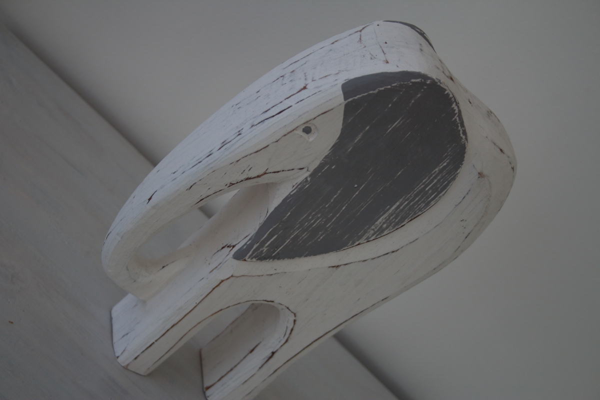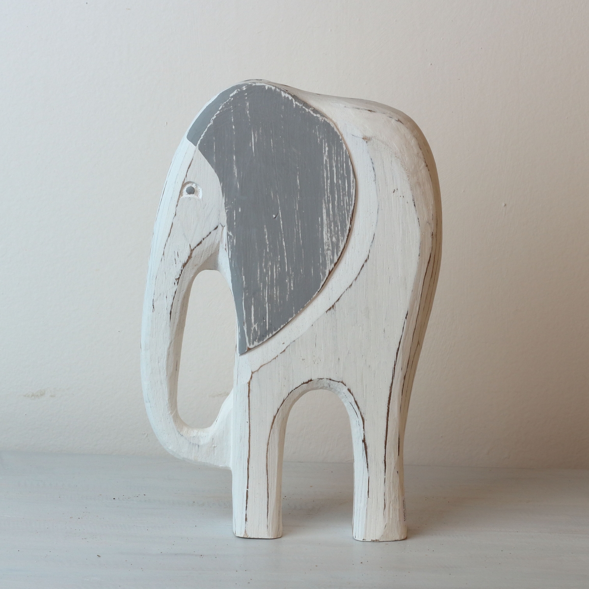Slon má bílou patinu a šedé uši. Bude krásnou dekorací do obýváku, ložnice i třeba do dětského pokoje.