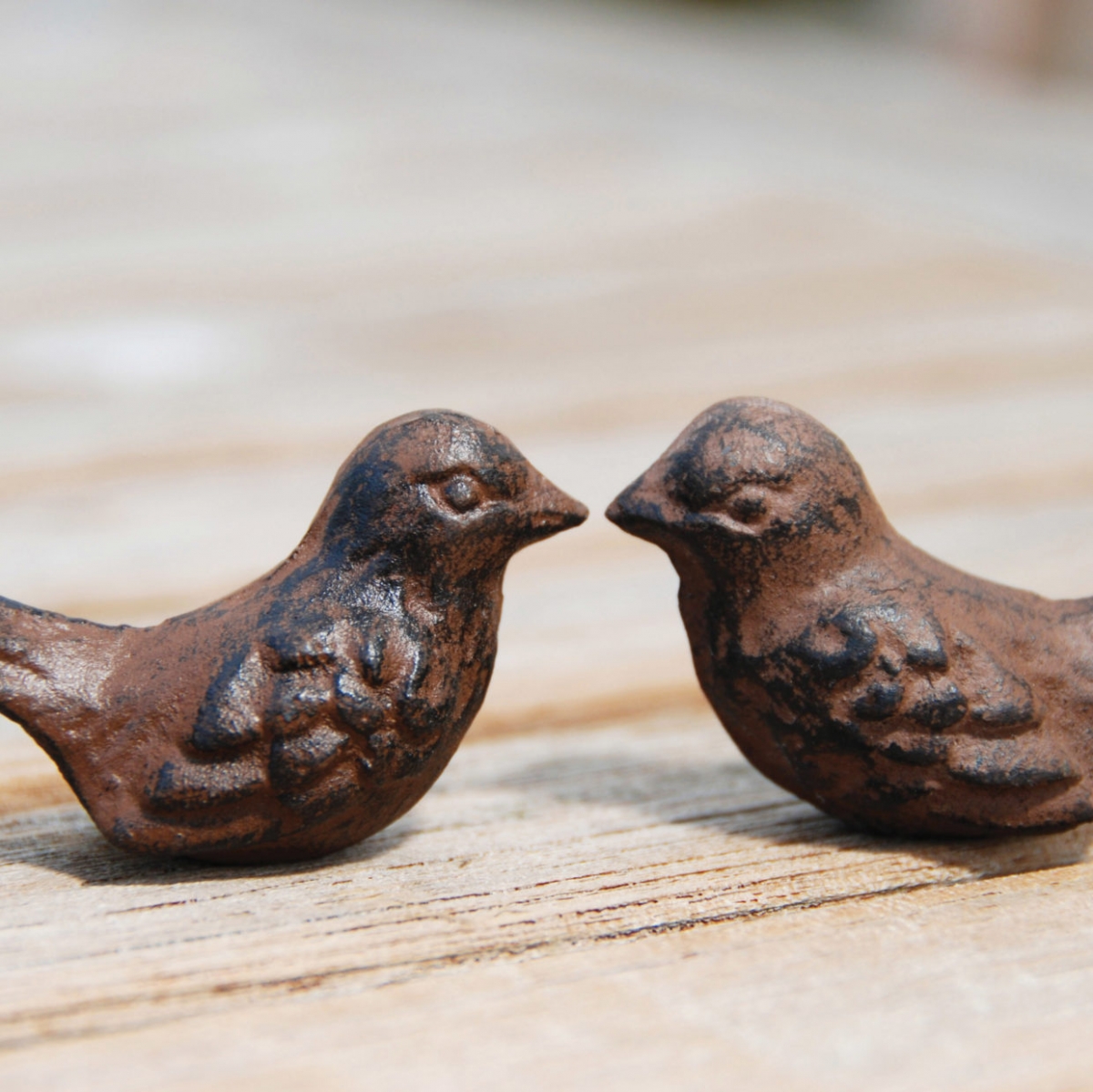 Litina, ze které jsou vyrobeni, je velmi odolným materiálem, který jen tak něco nepoškodí, tedy i materiál je ideálním symbolem přátelství. Ptáčci snesou i pobyt venku.