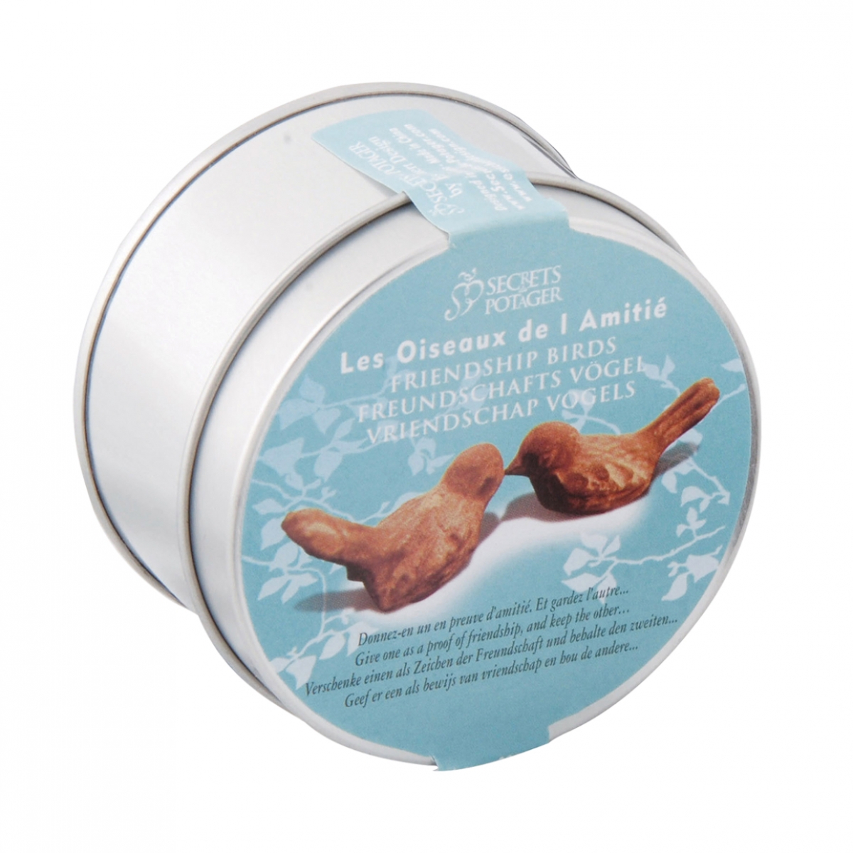 Dvě malé sošky ptáčků v dárkové plechovce, jsou nejen krásnou dekorací, ale i milým dárkem pro blízkou osobu. Jednoho ptáčka si necháte a druhého darujete, budou tak symbolizovat spojení mezi vámi.