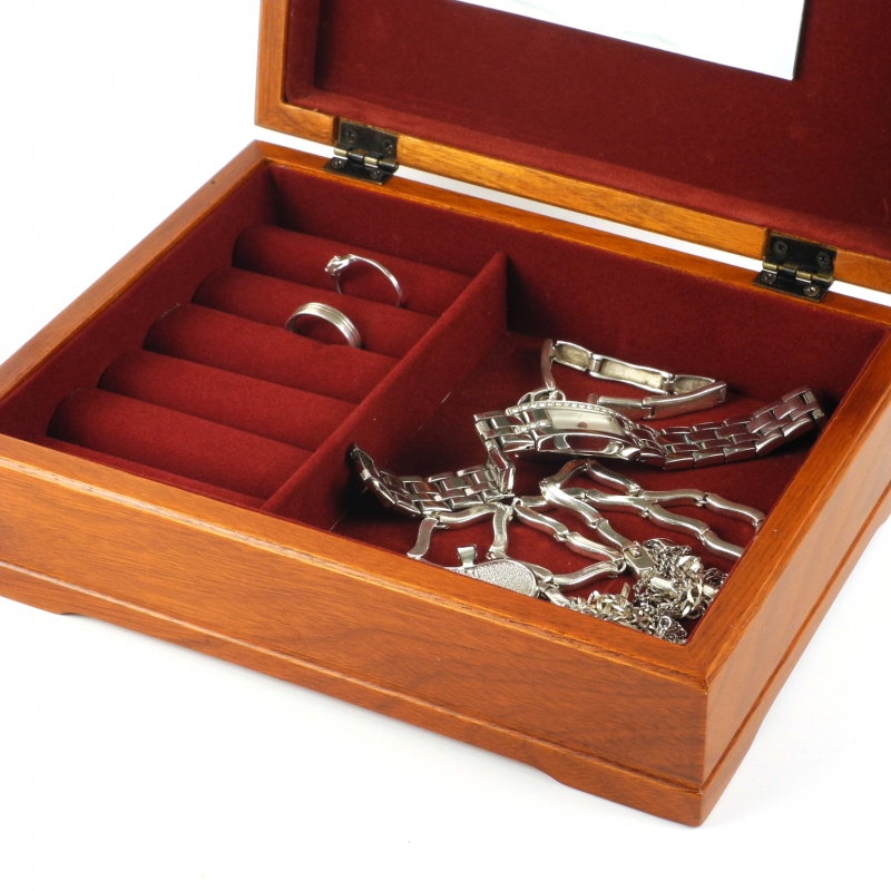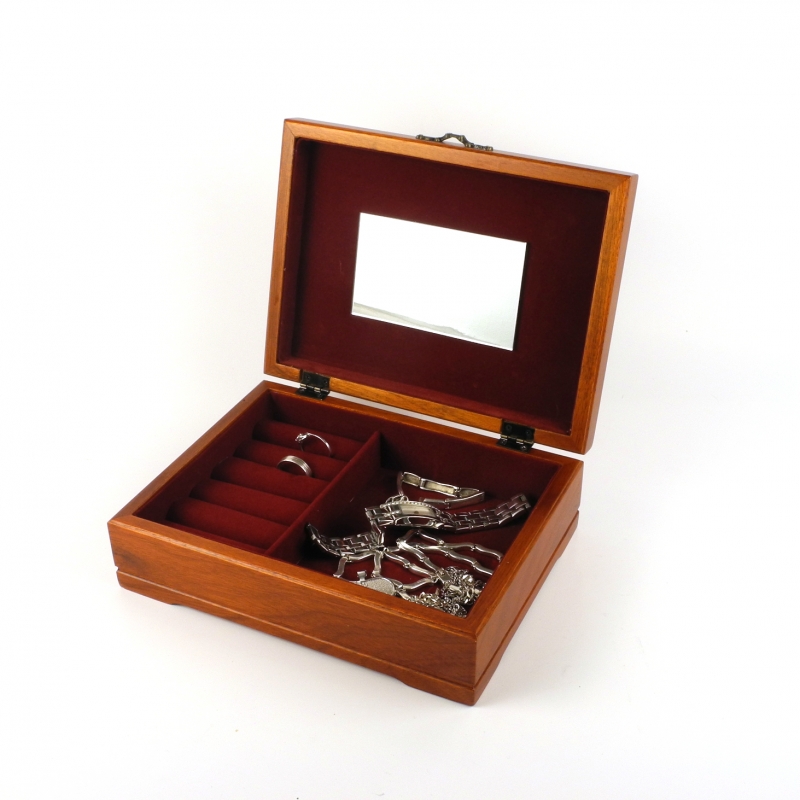 Šperkovnice dřevěná o rozměrech 20x15x6,5cm. Materiál: dřevo