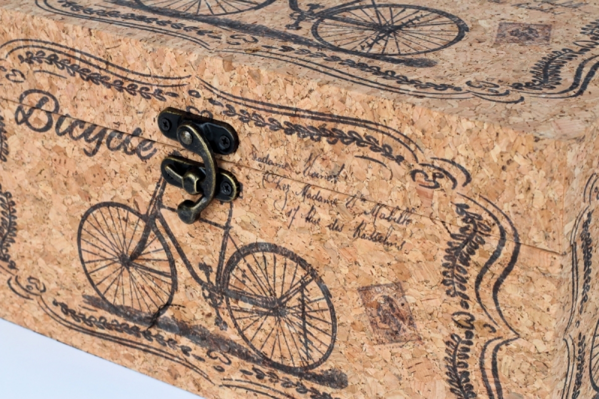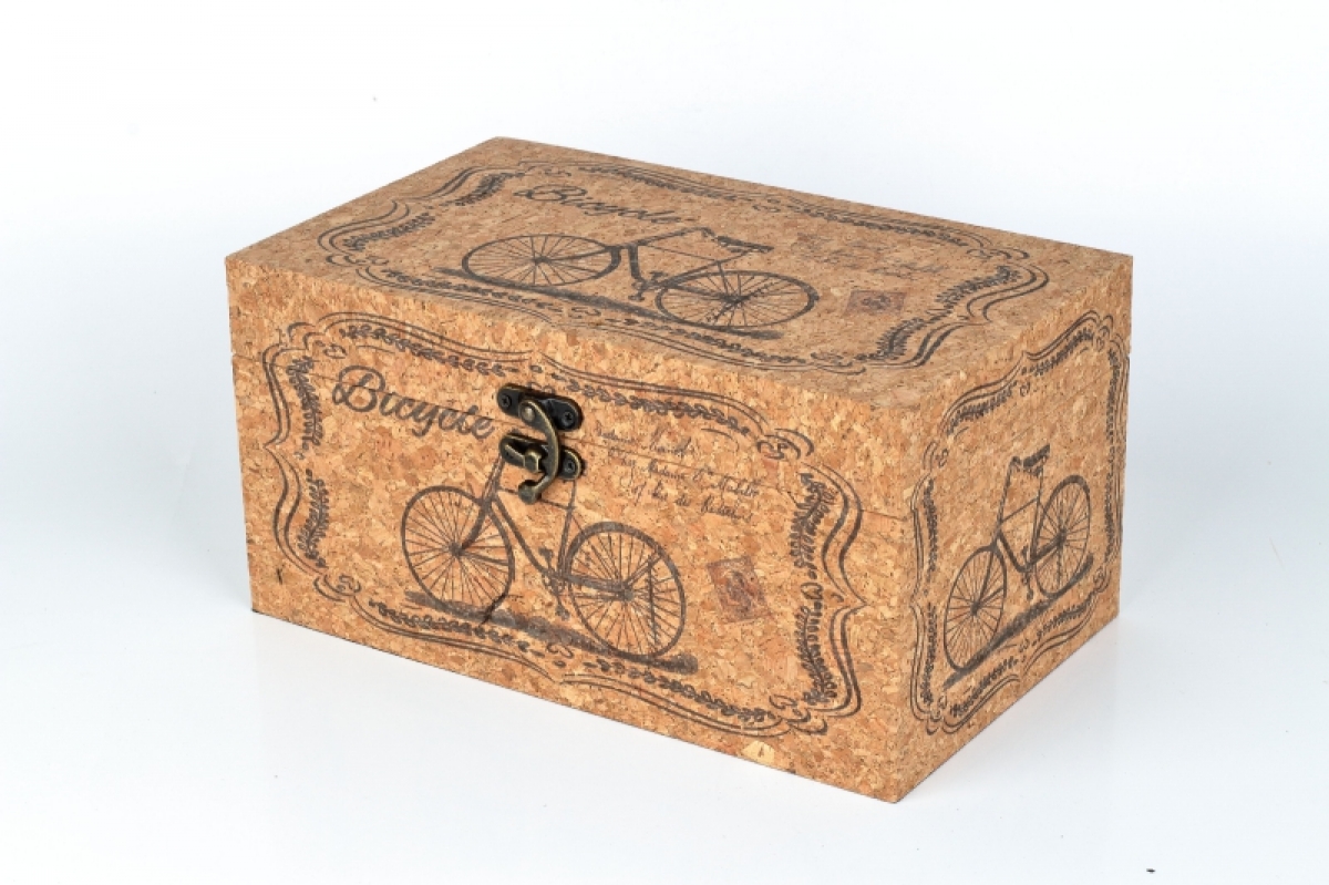 Šperkovnice 30x18x15cm je stylově dekorovaná a potažená přírodním korkem.