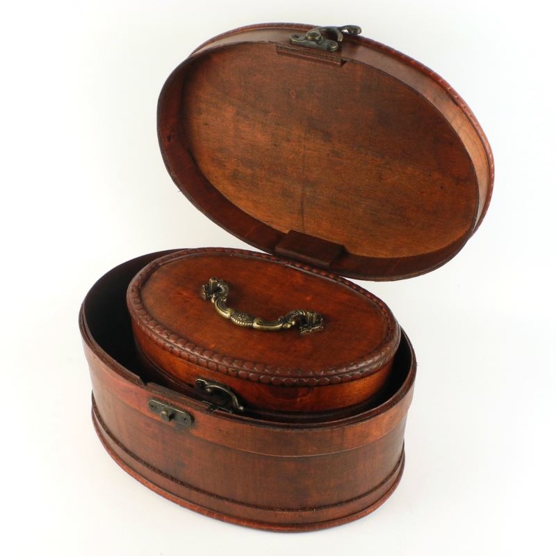 Šperkovnice velká dřevěná, sada dvou kusů. Celkové vnější rozměry s držátkem: 29x21x20cm a 22x15x17cm.