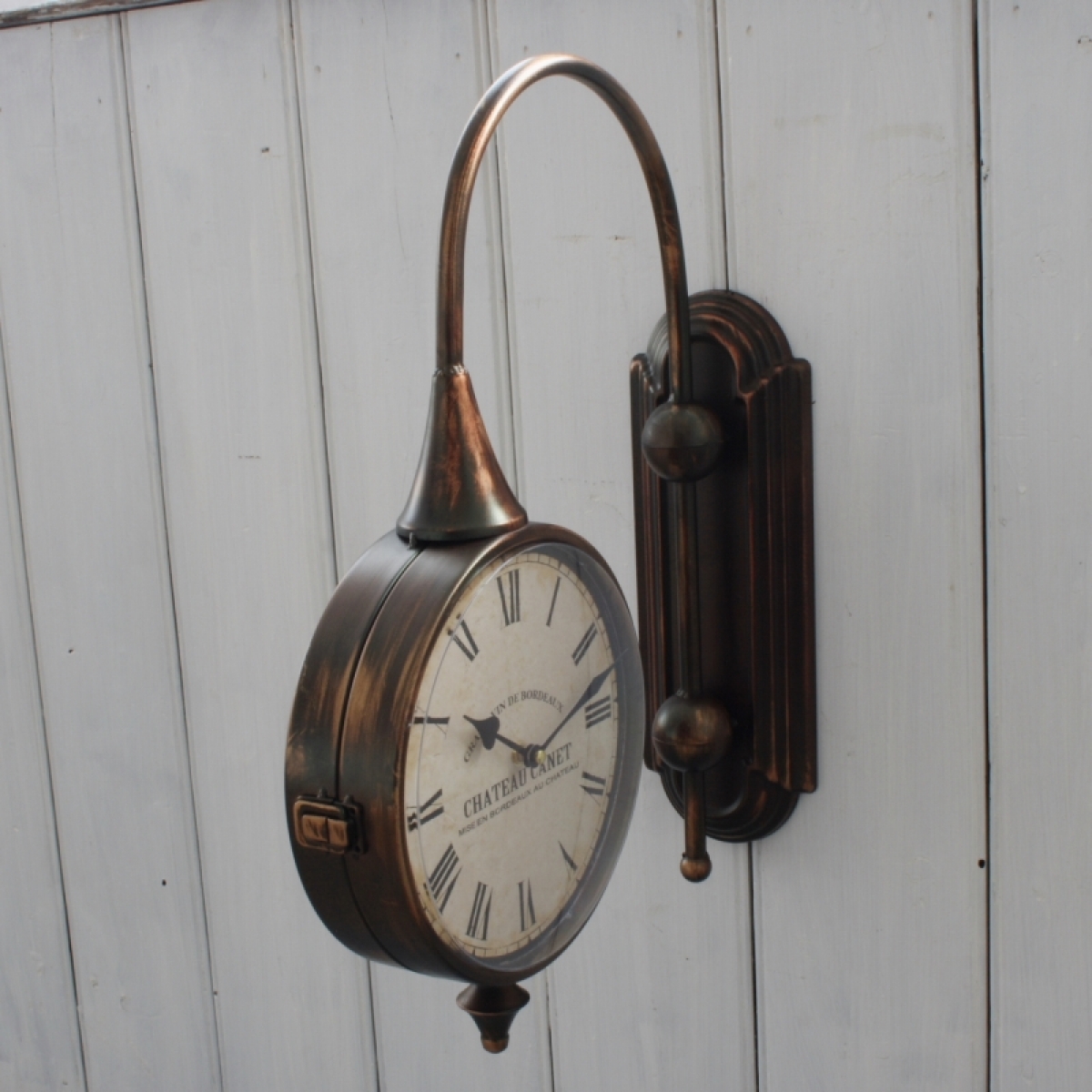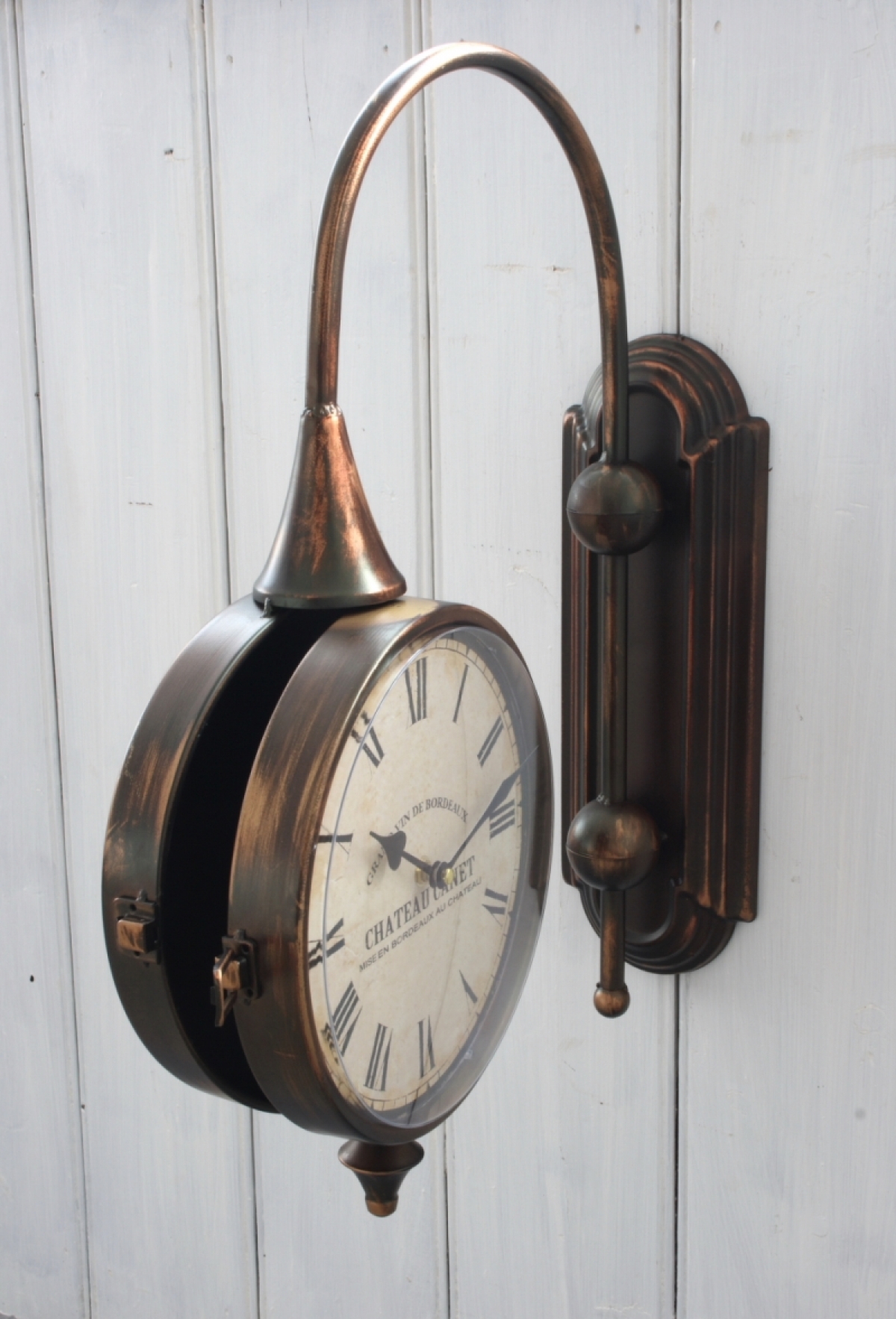 Nástěnné oboustranné hodiny byly vyřazeny z důvodu chybějících sklíček ciferníku.