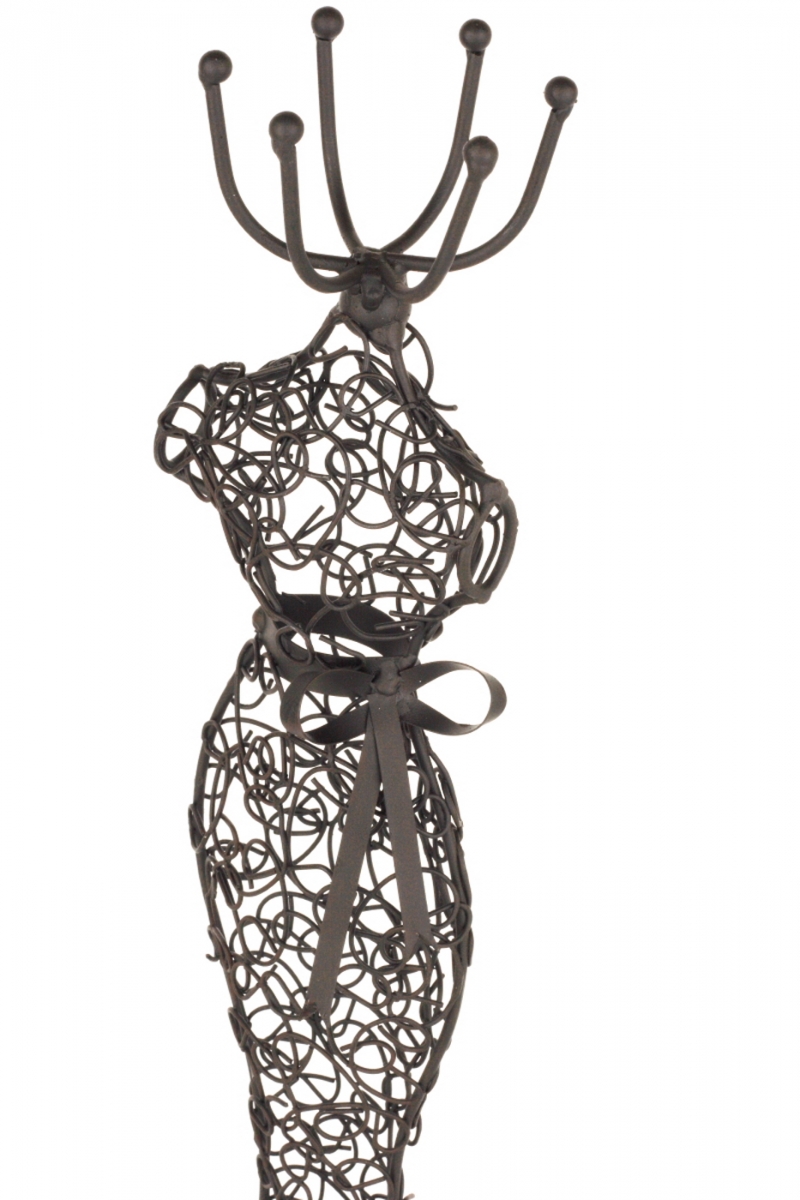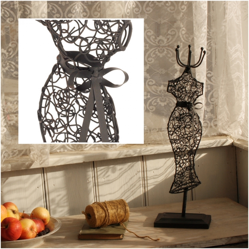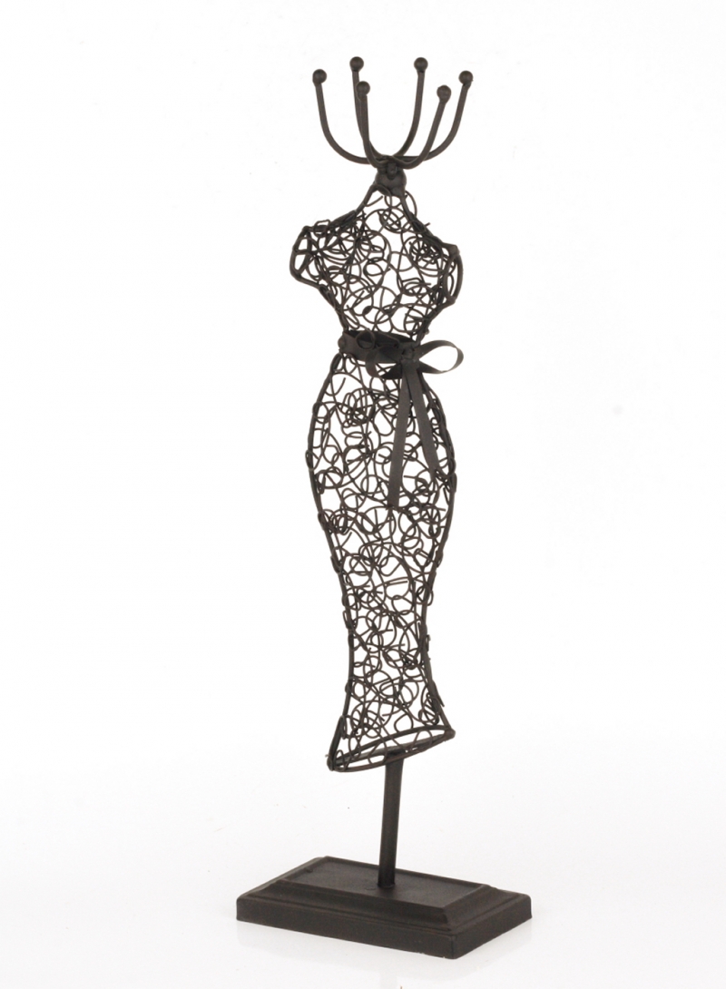 Kovový stojan na šperky v podobě krejčovské figuríny na podstavci je velmi pěknou dekorací ložnic nebo koupelen.