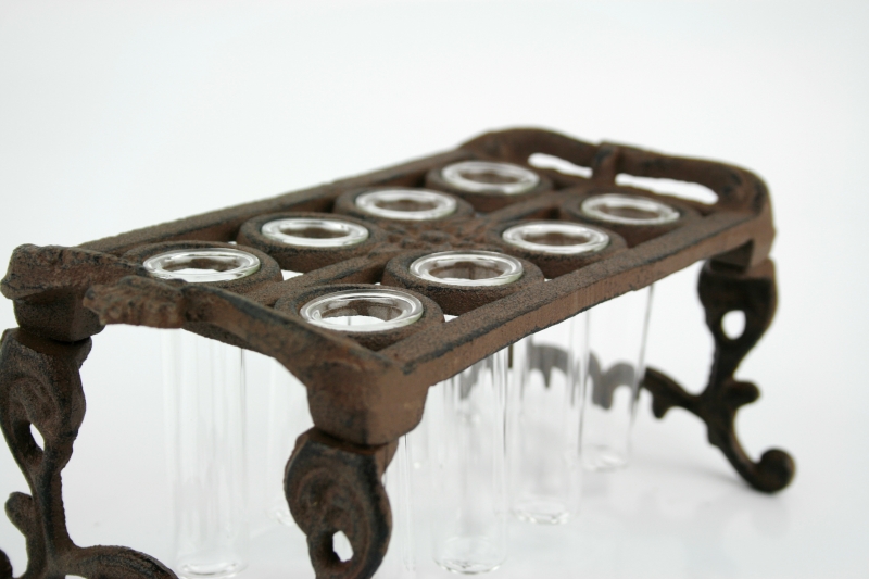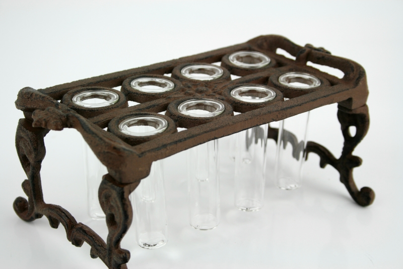 Stojánek na řízkování rostlin je vyrobený z litiny.