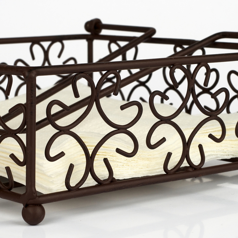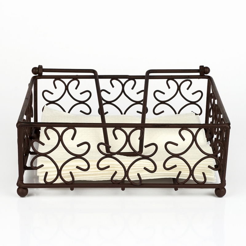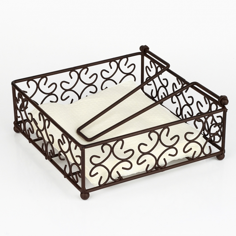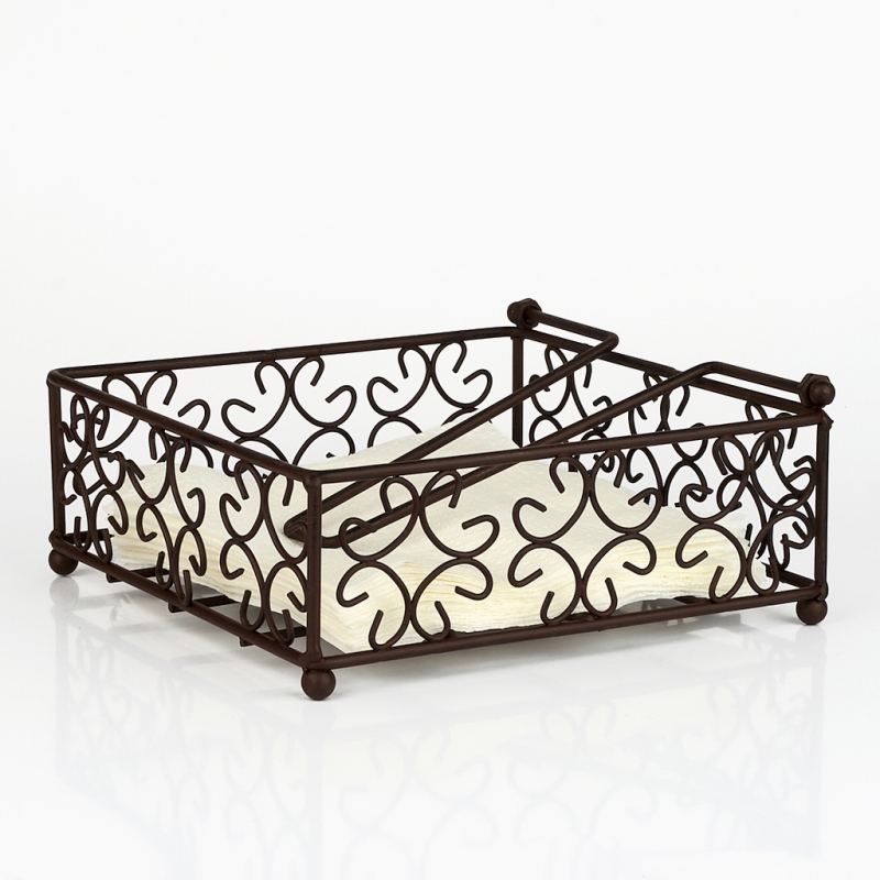 Stojánek na ubrousky se zatěžovátkem. Materiál kov. Vnější rozměry 19x19x7,5cm.