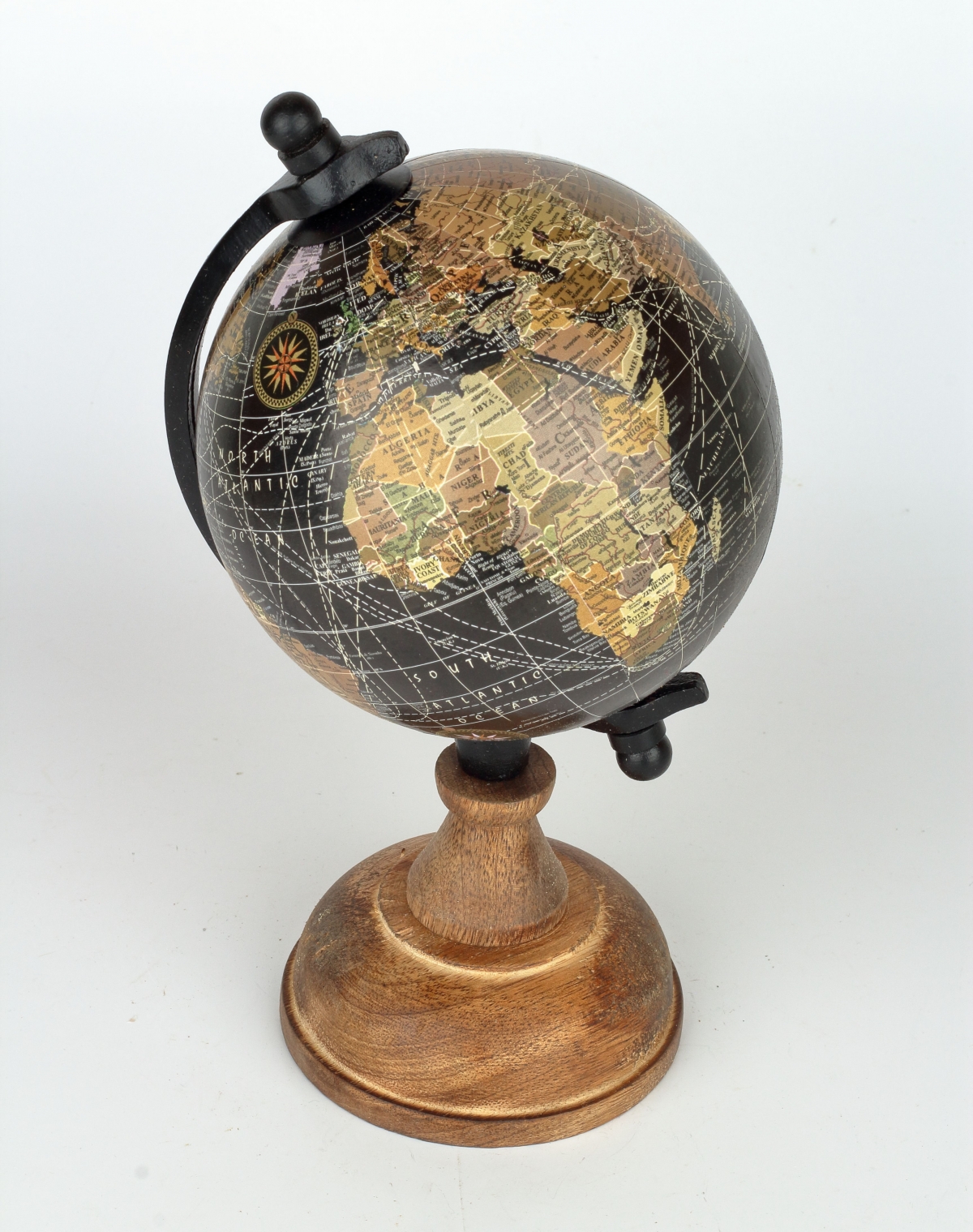 Stolní globus na dřevěném podstavci černý 24cm patří mezi klasické bytové doplňky, které neztrácejí své osobité kouzlo ani po letech!