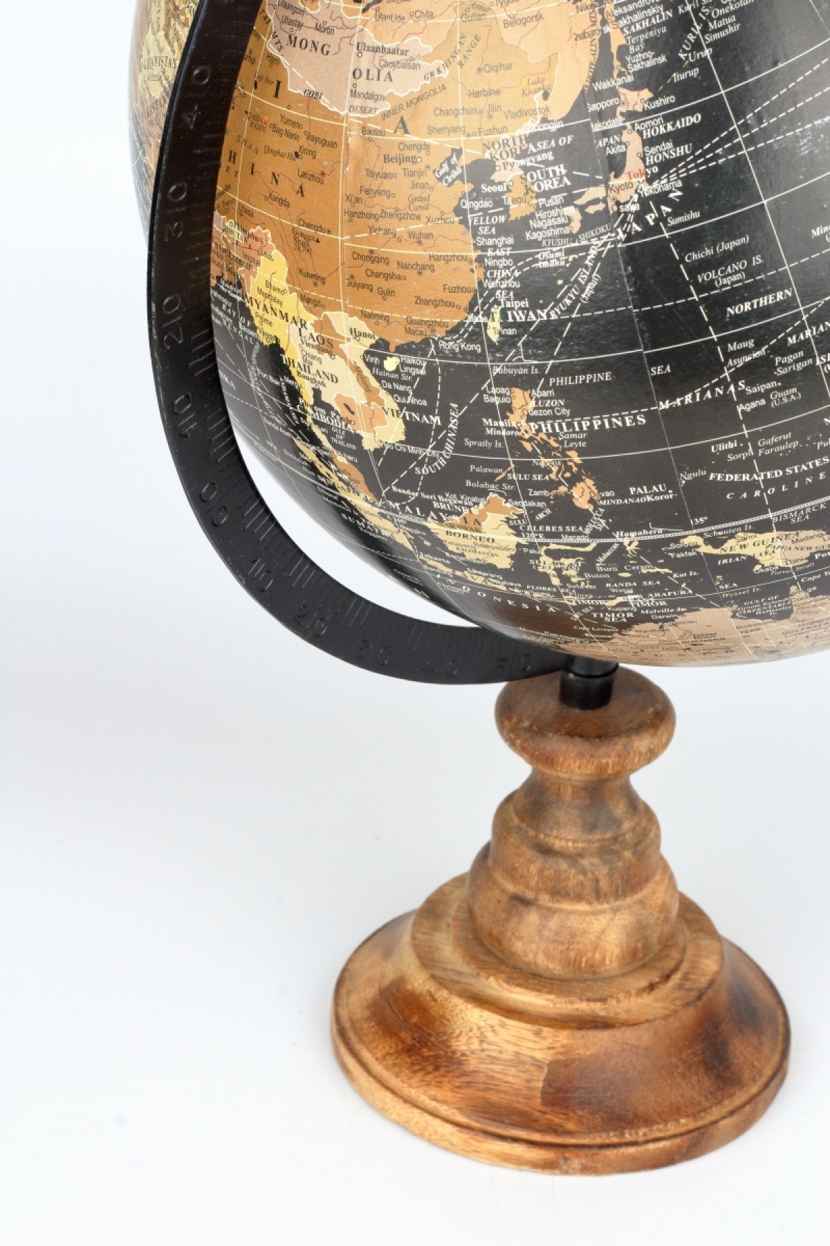 Stolní globus na dřevěném podstavci černý cm patří mezi klasické bytové doplňky, které neztrácejí své osobité kouzlo ani po letech!