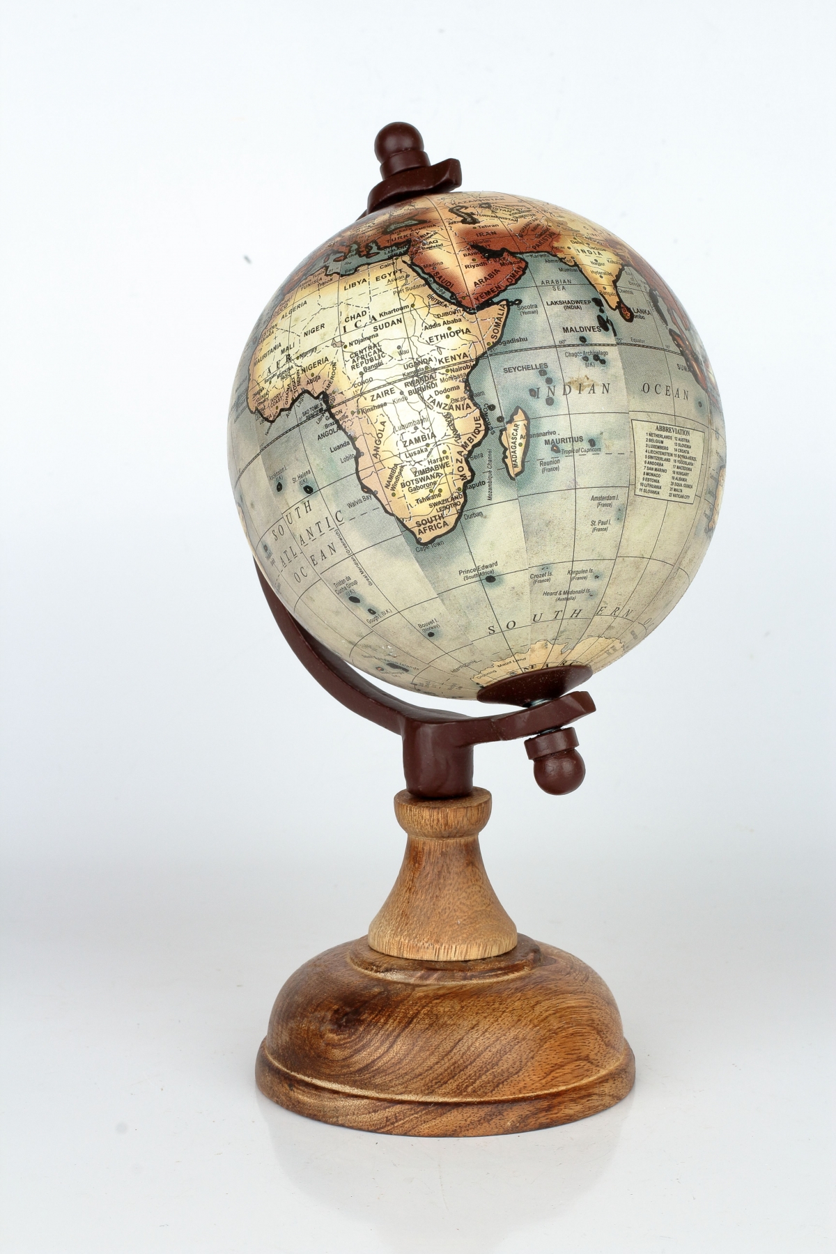 Stolní globus s dřevěným půlpoledníkem 26cm