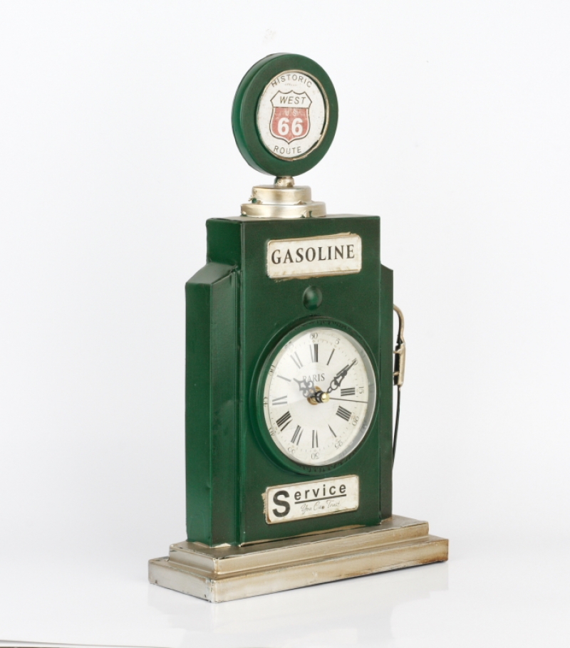 Stolní hodiny Gasoline zelené 38cm pro milovníky retro dekorací a světa automobilů.